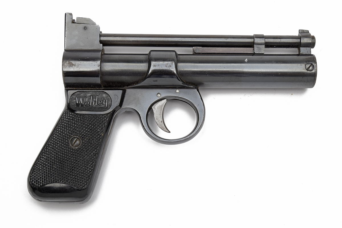A .177 BARREL-COCKING AIR PISTOL SIGNED WEBLEY, MODEL JUNIOR serial no. 774,