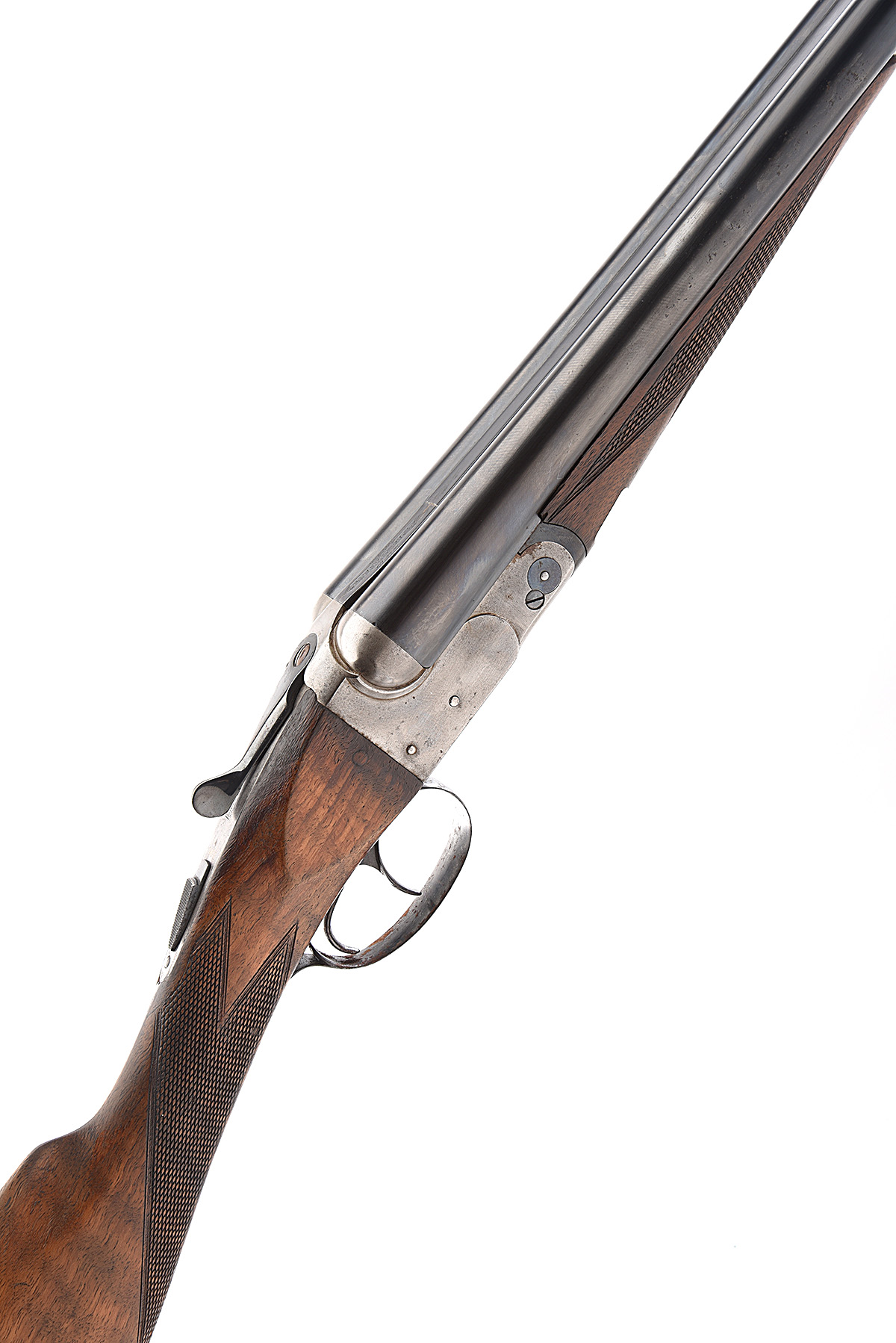circa 1910, 30in. nitro barrels, 2 1/2in. chambers, bored approx. true cyl. and 3/4 choke, automatic safety with gold-inlaid 'SAFE' detail, 14 1/4in. stock;