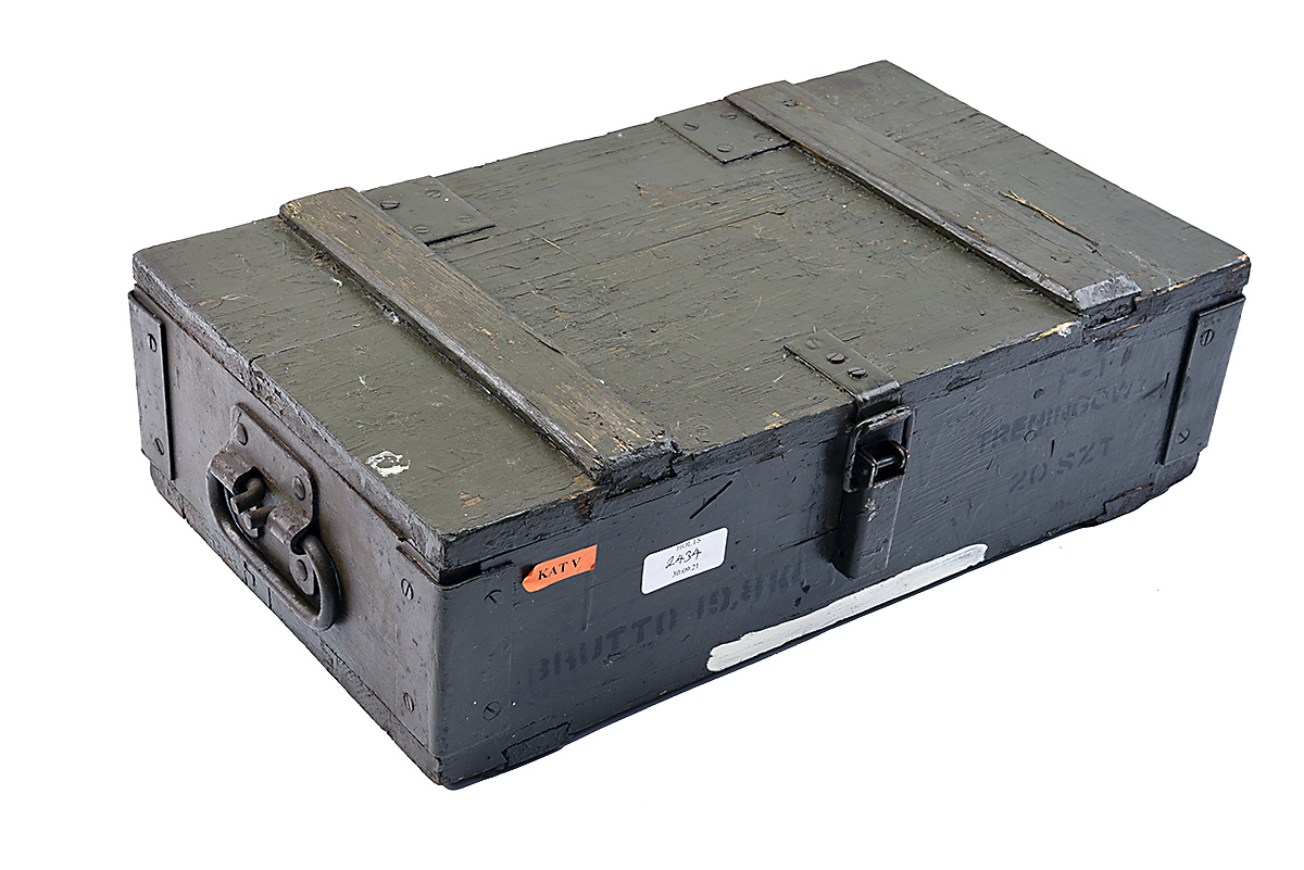 A WOODEN RUSSIAN GRENADE TRANSIT-BOX compartmented for 20 grenades and fuses