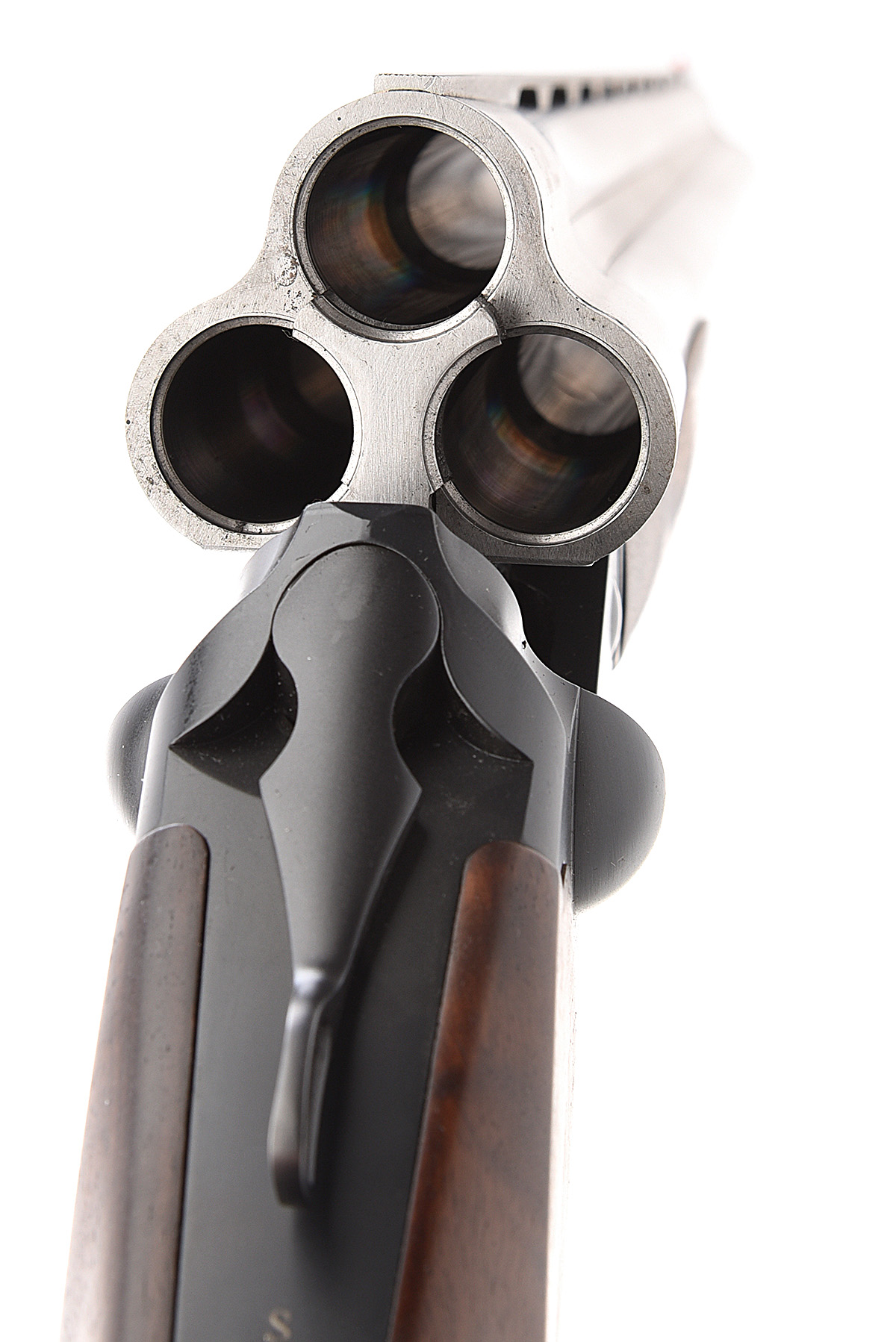 A VIRTUALLY NEW AND UNUSED AKKAR 12-BORE (3IN.) 'TRIPLE-CROWN' TRIPLE-BARRELLED SINGLE-TRIGGER TRIGGERPLATE-ACTION NON-EJECTOR, serial no. 17600110, circa 2017, 32in. superior proofed nitro barrels with 6mm ventilated matt top-rib, 3in. chambers, multichoke (with spares), manual safety, plain blacked action, 14 1/4in. pistolgrip stock including rubber recoil pad, beavertail fore-end, weight 9lb. 4oz., in its makers universal ABS case with paperwork and cardboard outer