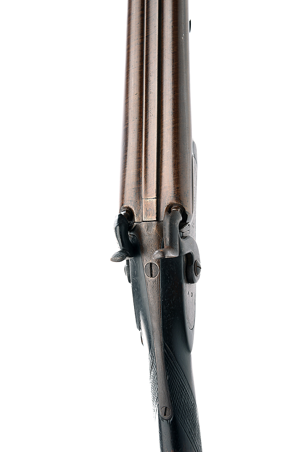 A 13-BORE PERCUSSION DOUBLE-BARRELLED SPORTING-GUN SIGNED H.J. MULLAN & CO. NEW ORLEANS, no visible serial number,