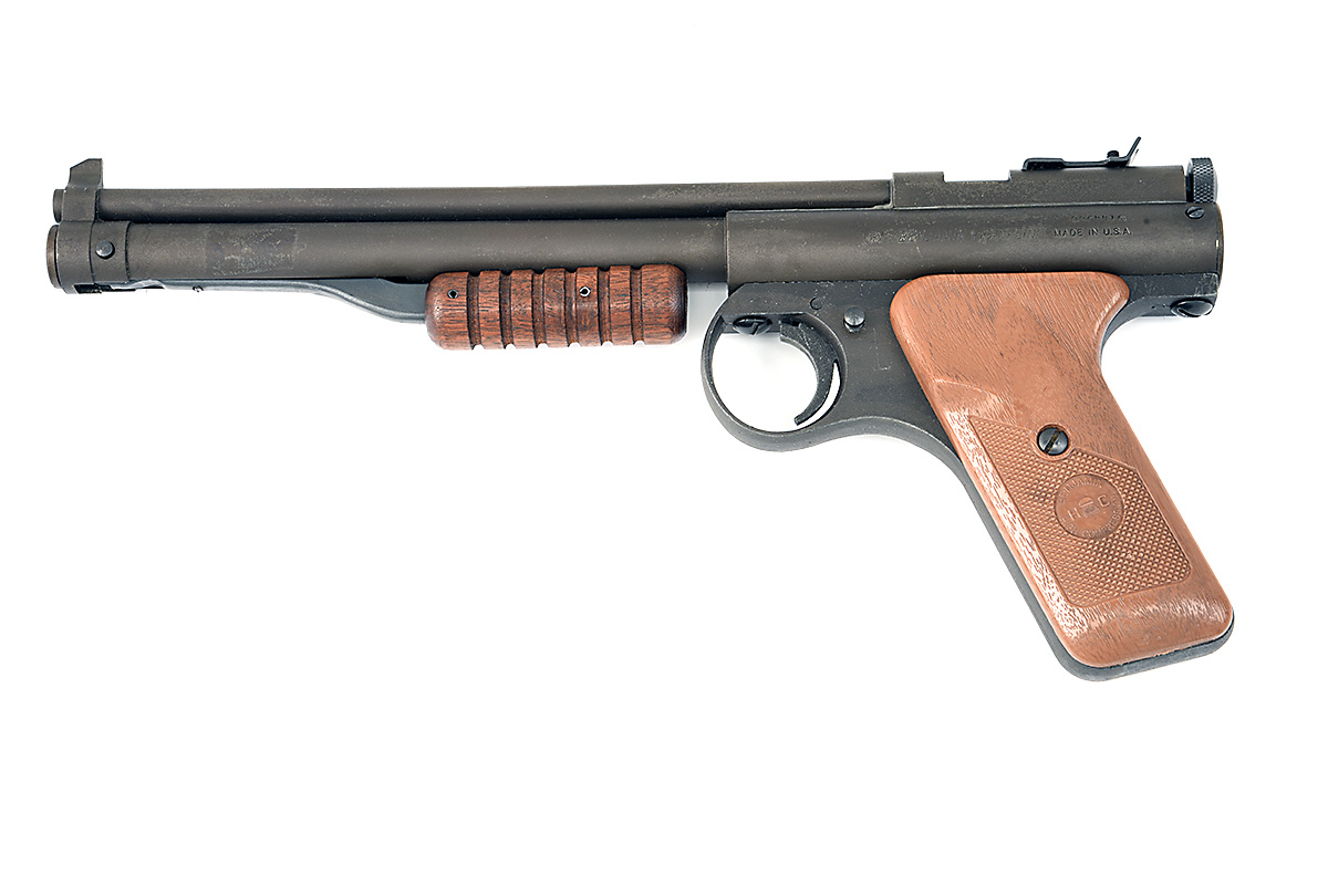 A CASED .22 PUMP PNEUMATIC AIR PISTOL SIGNED BENJAMIN MODEL 132 Serial no B264416