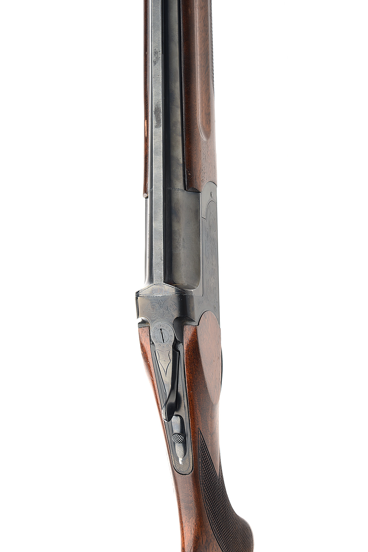 F. SARRIUGARTE 12-BORE 'CENTURY EJECTOR' DOUBLE-TRIGGER OVER AND UNDER EJECTOR, serial no. 57749, for 1980, 27 1/2in. nitro barrels with 7mm ventilated matt top-rib, 2 3/4in. chambers, bored approx. true cyl. and 1/2 choke, hold-open toplever, manual safety, scroll engraving,13 7/8in. pistolgrip stock including 3/4in. recoil pad (poorly fitted)