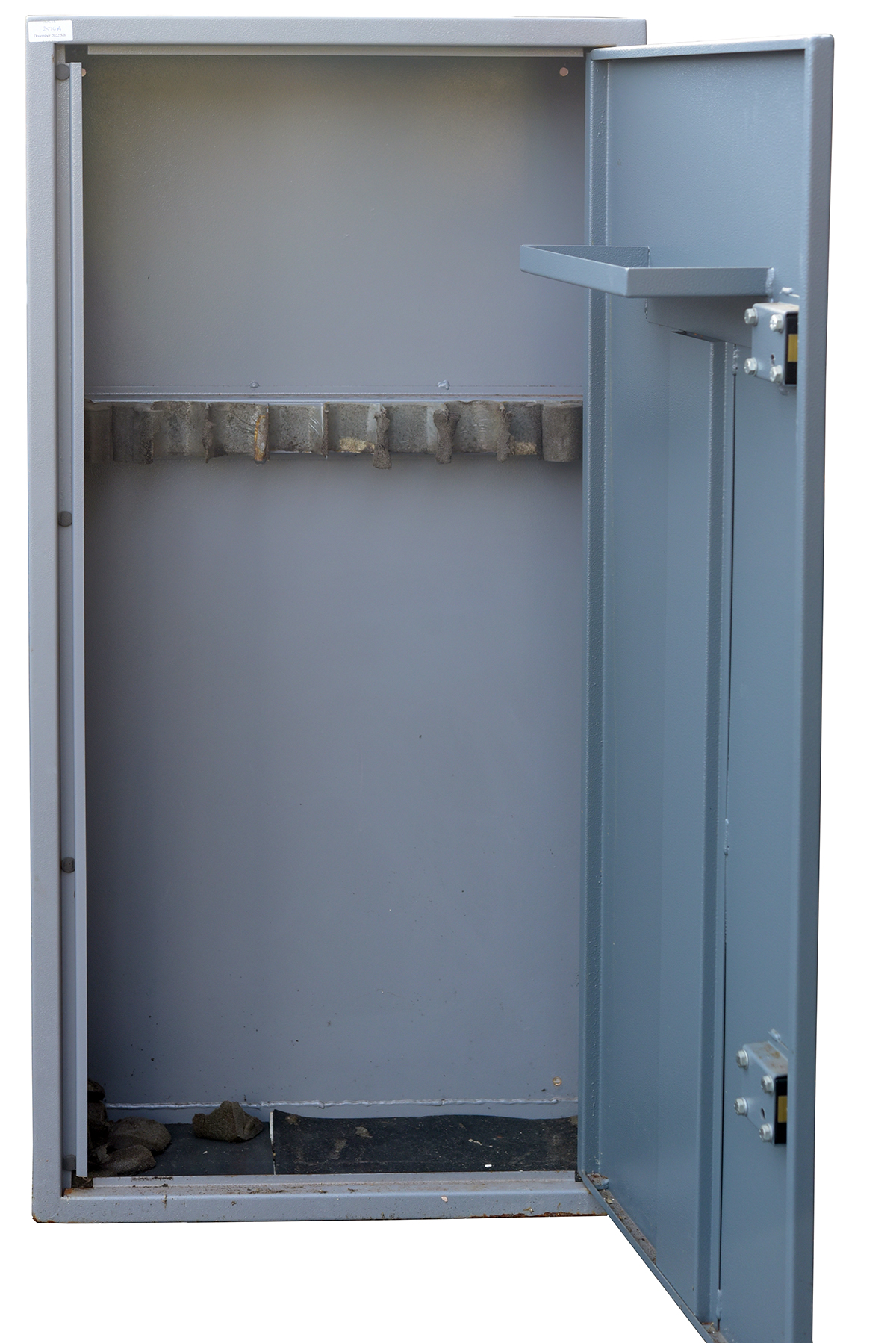A STEEL GUN / RIFLE CABINET, fitted for 10 full length guns / rifles, measuring approx. 51in. x 26in. x 10in., including key