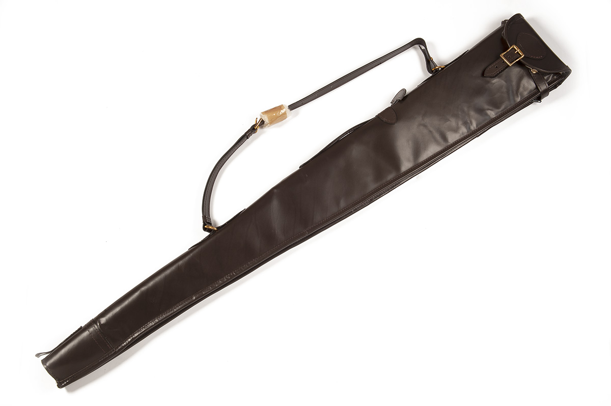 A LEATHER LEG-OF-MUTTON SINGLE GUNCASE,