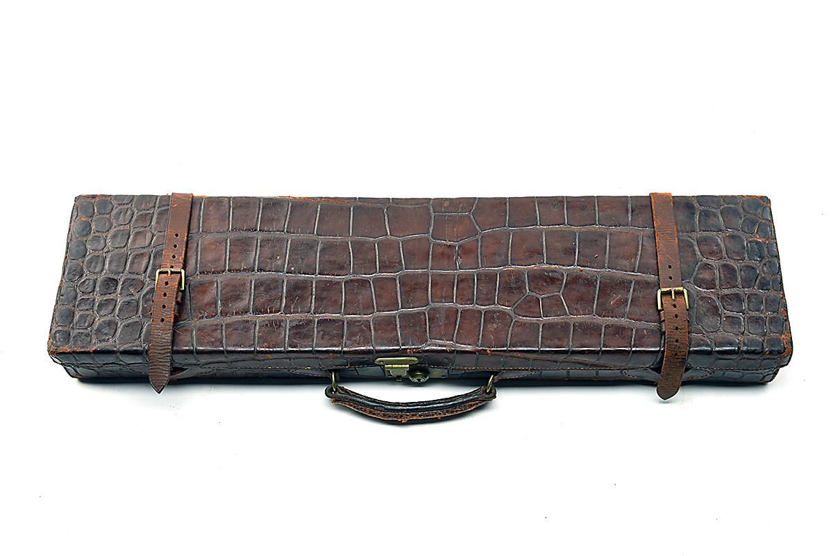 A VINTAGE CROCODILE SKIN GUNCASE,