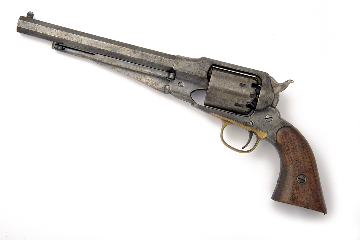 A REPRODUCTION .44 PERCUSSION REVOLVER SIGNED NAVY ARMS, MODEL 'REMINGTON ARMY', serial no. 14059, with octagonal 8in. barrel, solid frame, plain cylinder and smooth walnut grips, finish worn