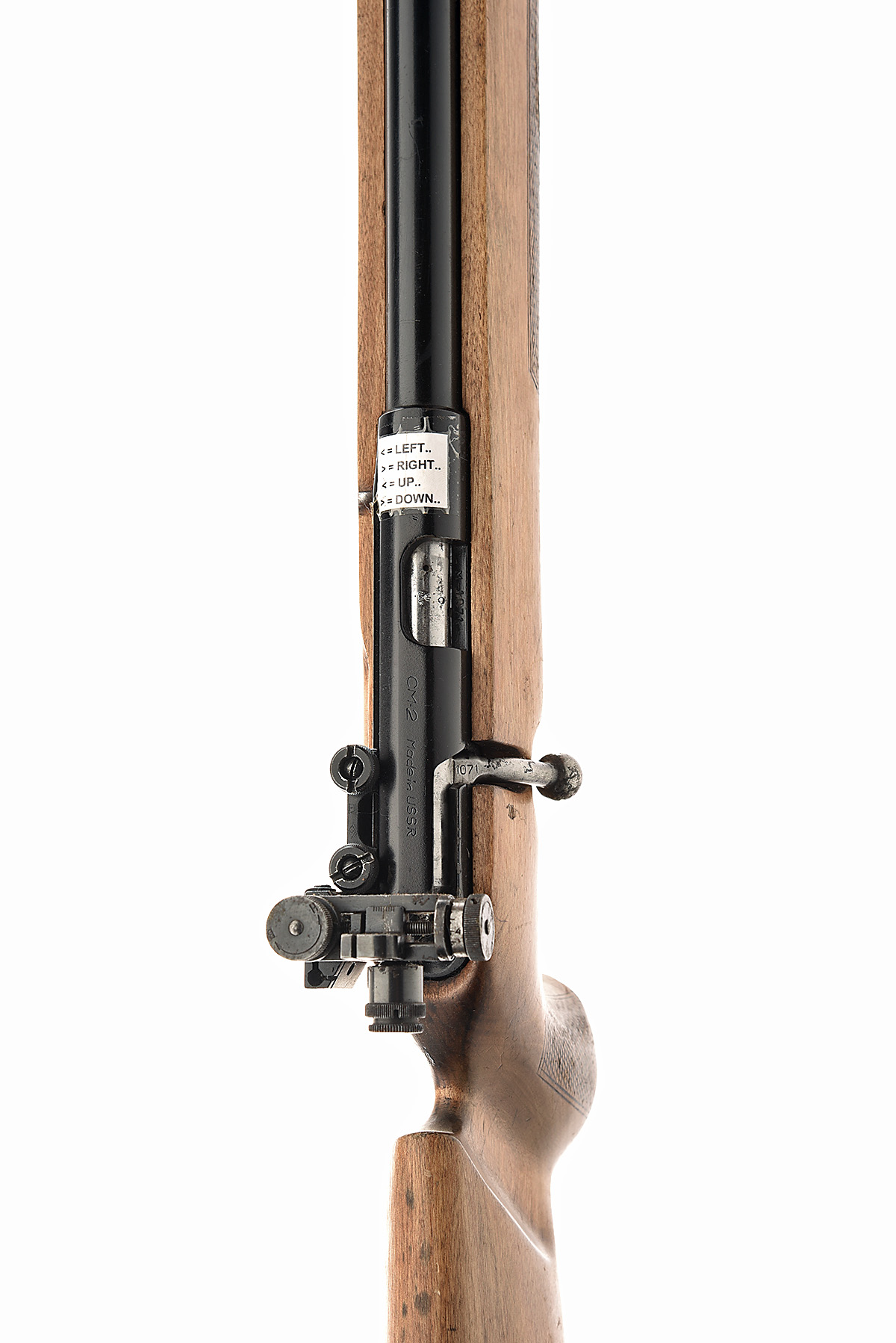 A VOSTOK .22 L.R. 'CM-2' BOLT-ACTION TARGET RIFLE, serial no. M-1071, circa 1975, 26 3/4in. heavy nitro barrel, aperture fore-sight, adjustable aperture rear sight, single-shot bolt-action, plain blacked finish, chequered pistolgrip halfstock with cheekpiece, adjustable buttplate, the fore-end with underslung accessory rail, 13 1/2in. pull