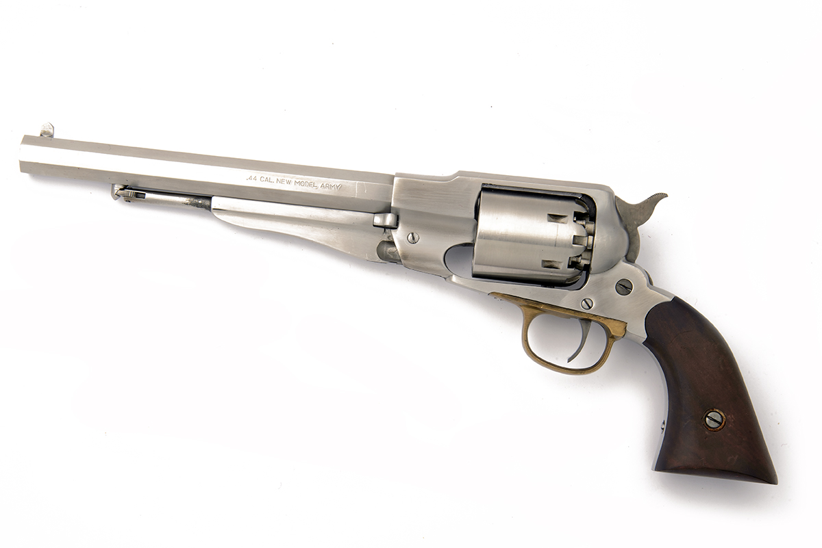 A REPRODUCTION .44 PERCUSSION REVOLVER SIGNED EUROARMS, MODEL STAINLESS REMINGTON, serial no. 115971,