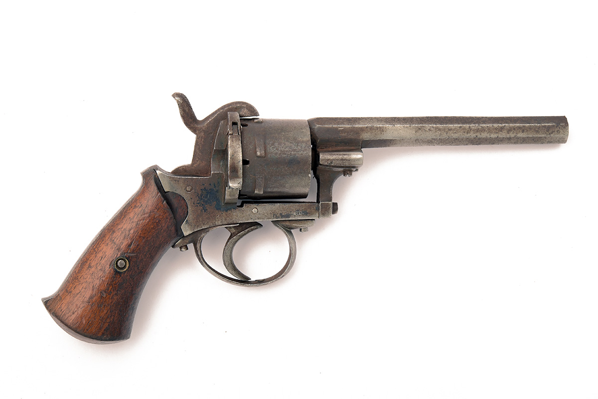 A BELGIAN 9mm DOUBLE ACTION PINFIRE REVOLVER SIGNED JA & C serial number 2021,