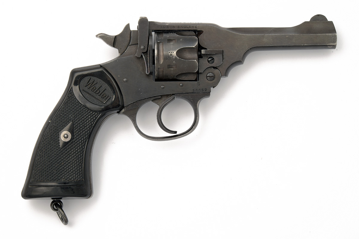 A .38 (S&W) WEBLEY & SCOTT MKIV REVOLVER, serial no. B28859, with 4in. barrel, break-open frame with auto-ejecting cylinder and chequered hard rubber grips
