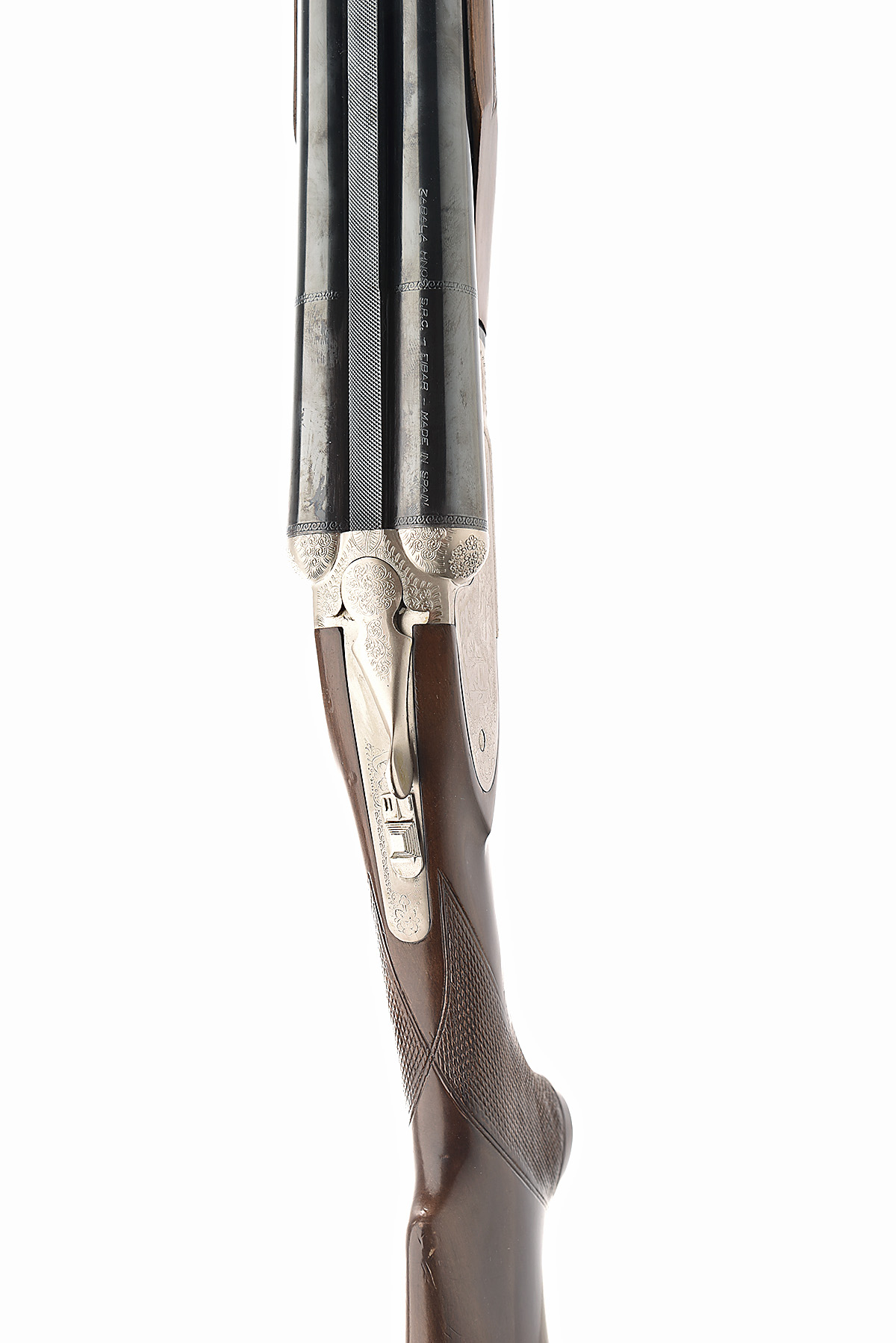 ZABALA HERMANOS 12-BORE (3IN.) SINGLE-TRIGGER SIDEPLATED BOXLOCK EJECTOR, serial no. 1108, dated 1996, full Spanish code 60-03-1108-96-12-76, 27 3/4in. nitro barrels, 3in. chambers, multichokes (with spares), manual safety with integral barrel selector switch, border and partial acanthus scroll engraving, the decorative sideplates with scenes of flushed feather and fowl alighting, matt silver finish, 14 3/8in. pistolgrip stock including 5/8in. rubber recoil pad, beavertail fore-end, weight 7lb. 8oz., in its makers carton