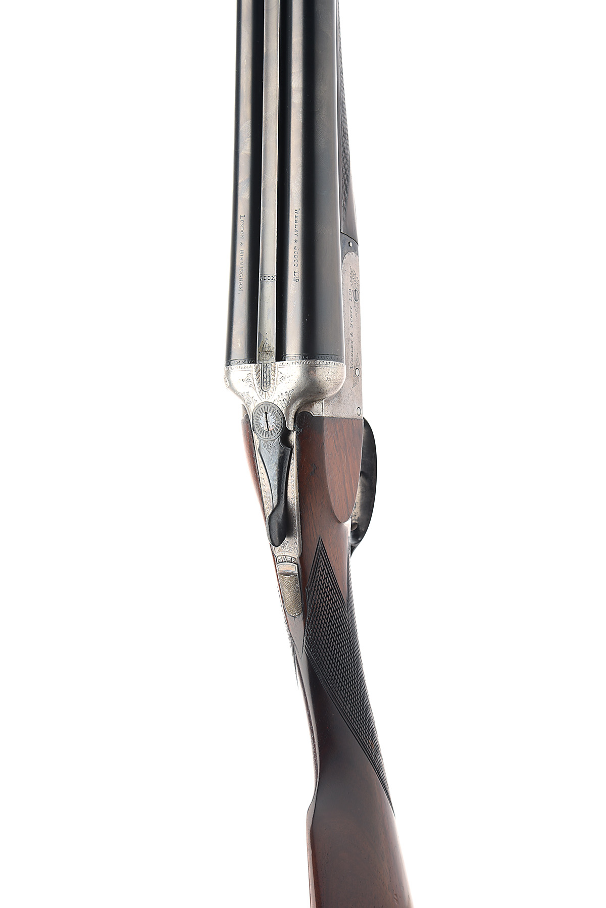 WEBLEY & SCOTT 12-BORE BOXLOCK EJECTOR, serial no. 112027, dated 1927, 30in. nitro barrels, 2 1/2in. chambers, bored approx. 1/4 and 3/4 choke, treble-grip action, automatic safety, border and partial scroll engraving, retaining very slight traces of original colour-hardening and finish, 15 1/2in. stock including 1/2in. extension, weight 7lb. 2oz.
