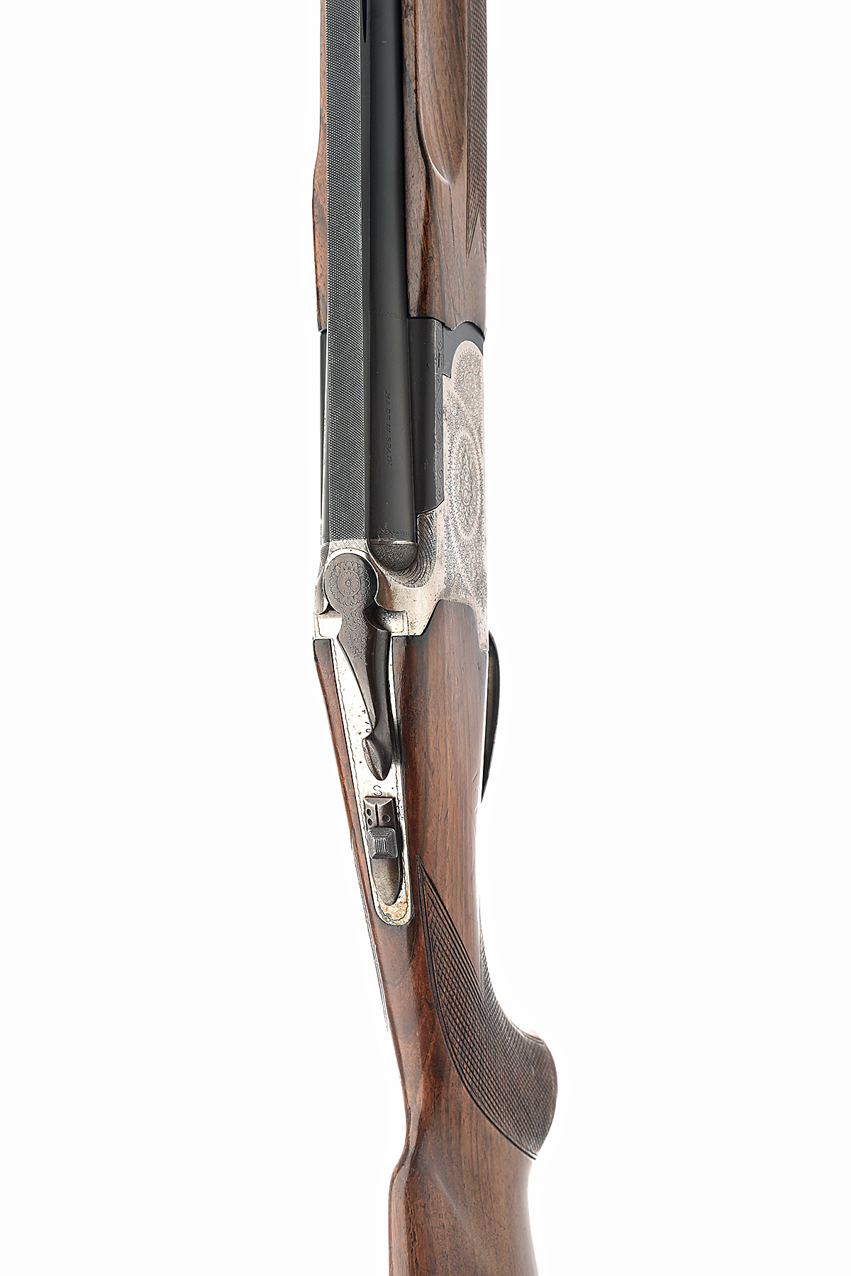 LANBER 12-BORE SINGLE-TRIGGER OVER AND UNDER EJECTOR, serial no. 169901, dated 1979, 27 1/2in. nitro barrels with ventilated mid-rib and 11mm ventilated matt top-rib, 2 3/4in. chambers, bored approx. imp. cyl. in both, hold-open toplever (not totally holding open), automatic safety with integral barrel selector switch, acanthus scroll engraving, 14 3/4in. pistolgrip stock including 1 3/8in. extension and rubber recoil pad