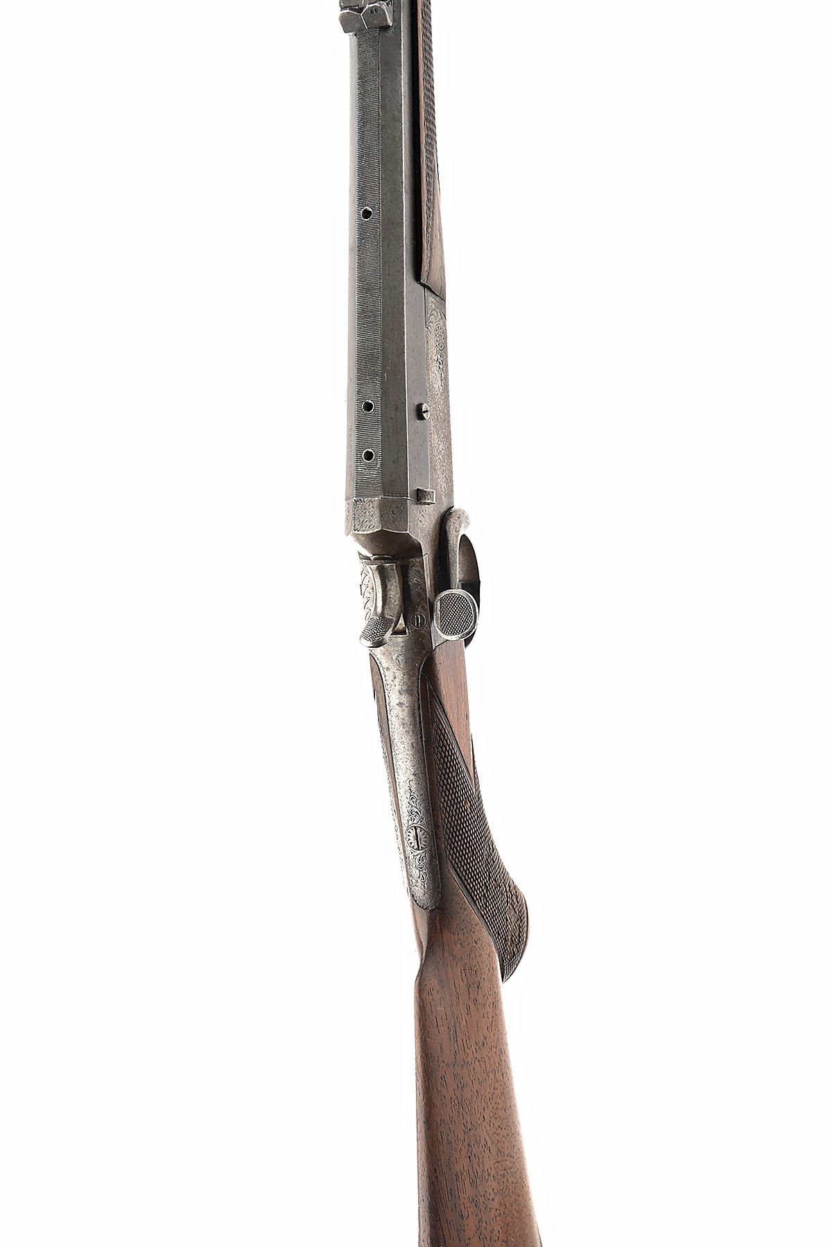 ARMY & NAVY C.S.L. .22 L.R. SINGLE-BARRELLED SIDELEVER ROOK RIFLE, serial no. 22644, 26in. lined octagonal barrel with matted top flat, engraved 'ARMY & NAVY C.S.L. LONDON., tunnel fore-sight (detached), V rear-sight with 2 x folding sights,central mounted rebounding hammer, unsigned action, beaded border with partial scroll engraving, 14 5/8in. semi-pistolgrip stock