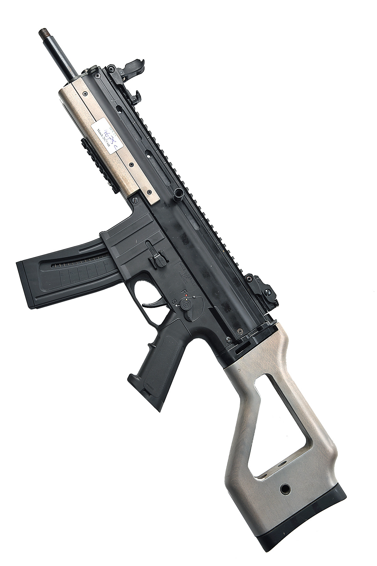 A CASED J.G. ANSCHUTZ .22 L.R. 'MSR RX22' SEMI-AUTOMATIC RIFLE, serial no. A448949, circa 2012, 11 1/2in. nitro barrel, threaded for sound moderator, open sights, scope rail, manual safety, detachable magazine, fixed tactical type stock (originally folding), in its full-length case with spare magazine