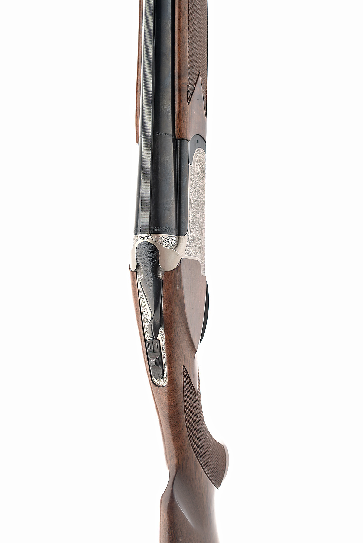 FRANCHI 12-BORE SINGLE-TRIGGER OVER AND UNDER EJECTOR, serial no. 4814615, dated 1985, 28in. nitro barrels with 6mm ventilated matt top-rib, 2 3/4in. chambers, bored approx. 3/4 and full choke, hold-open toplever, automatic safety, scroll engraving, 14 1/4in. pistolgrip stock including buttplate