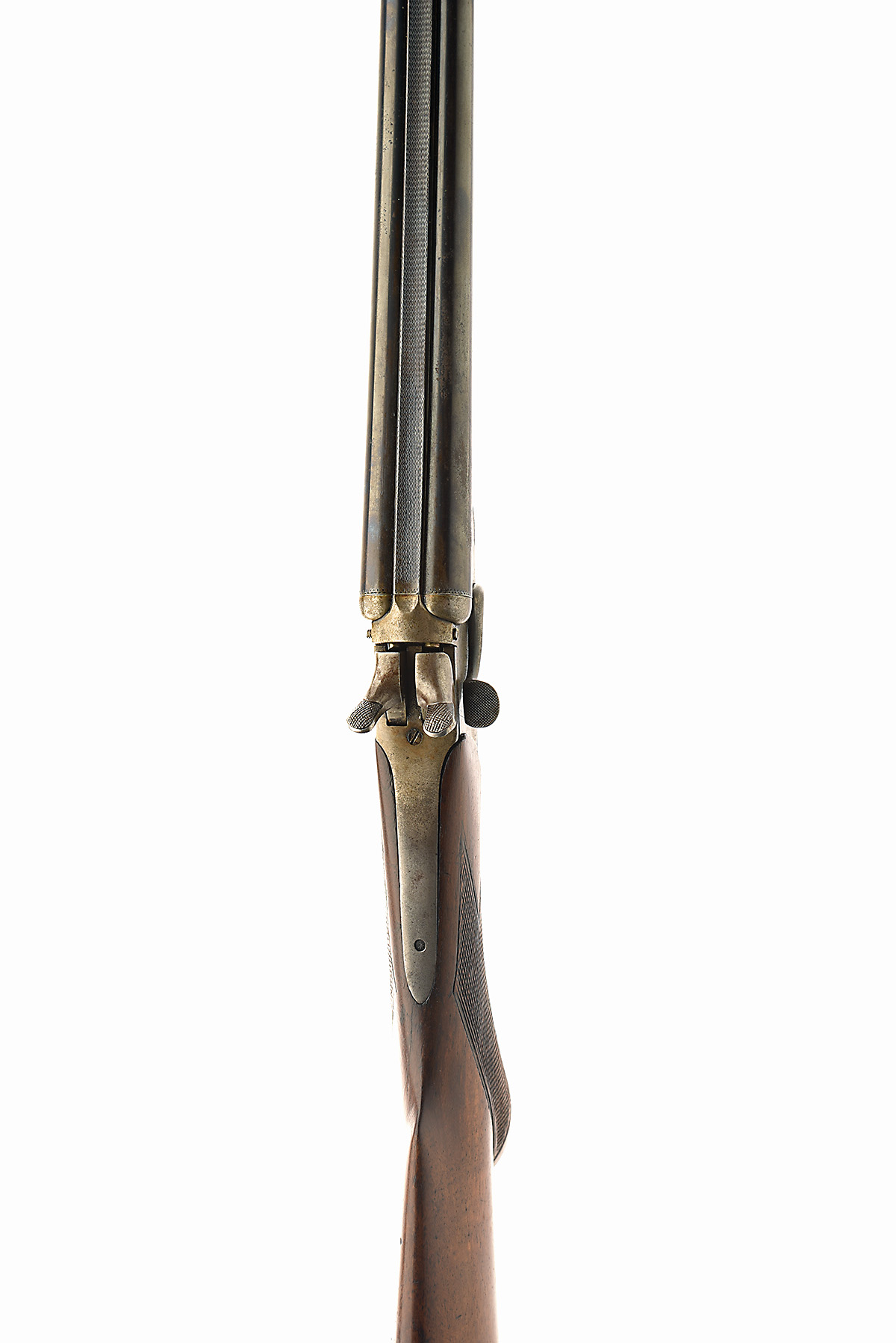 ENGLISH .410 (2IN.) DOUBLE-BARRELLED SIDELEVER HAMMERGUN, serial no. ALC799, circa 1910, 24 1/4in. black powder only barrels (pitted), 2in. chambers, bored approx. true cyl. and 1/4 choke, rebounding hammers, 14 1/4in. pistolgrip stock (pinned at head), including buttplate