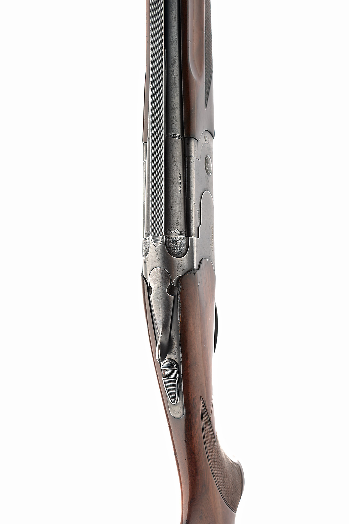 P. BERETTA 12-BORE '686 ONYX' SINGLE-TRIGGER OVER AND UNDER EJECTOR, serial no. F37602B, dated 1987, 28in. nitro barrels with 10mm ventilated matt top-rib, 2 3/4in. chambers, multichokes (no spares), hold-open toplever, manual safety with integral barrel selector switch, border engraving, 14 1/2in. pistolgrip stock (cracked at hand), weight 7lb. 3oz.