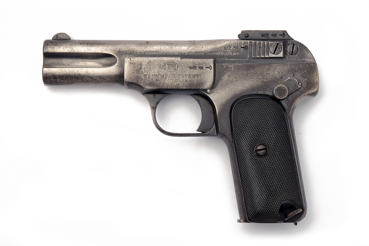 A .32 (ACP) FN BROWNING M1900 PISTOL serial no. 692437, with concealed 4in. barrel, blued slide and frame and chequered hard rubber grips, finish worn