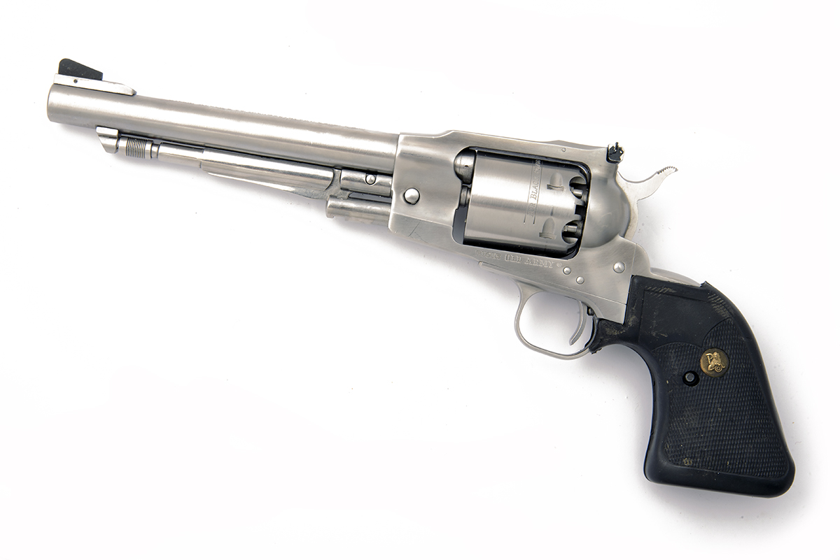A MODERN .45 PERCUSSION REVOLVER SIGNED RUGER, MODEL 'OLD ARMY', serial no. 145-87978, with round stainless 7 1/2in. barrel, adjustable sights, plain cylinder, solid frame and chequered soft-rubber grips