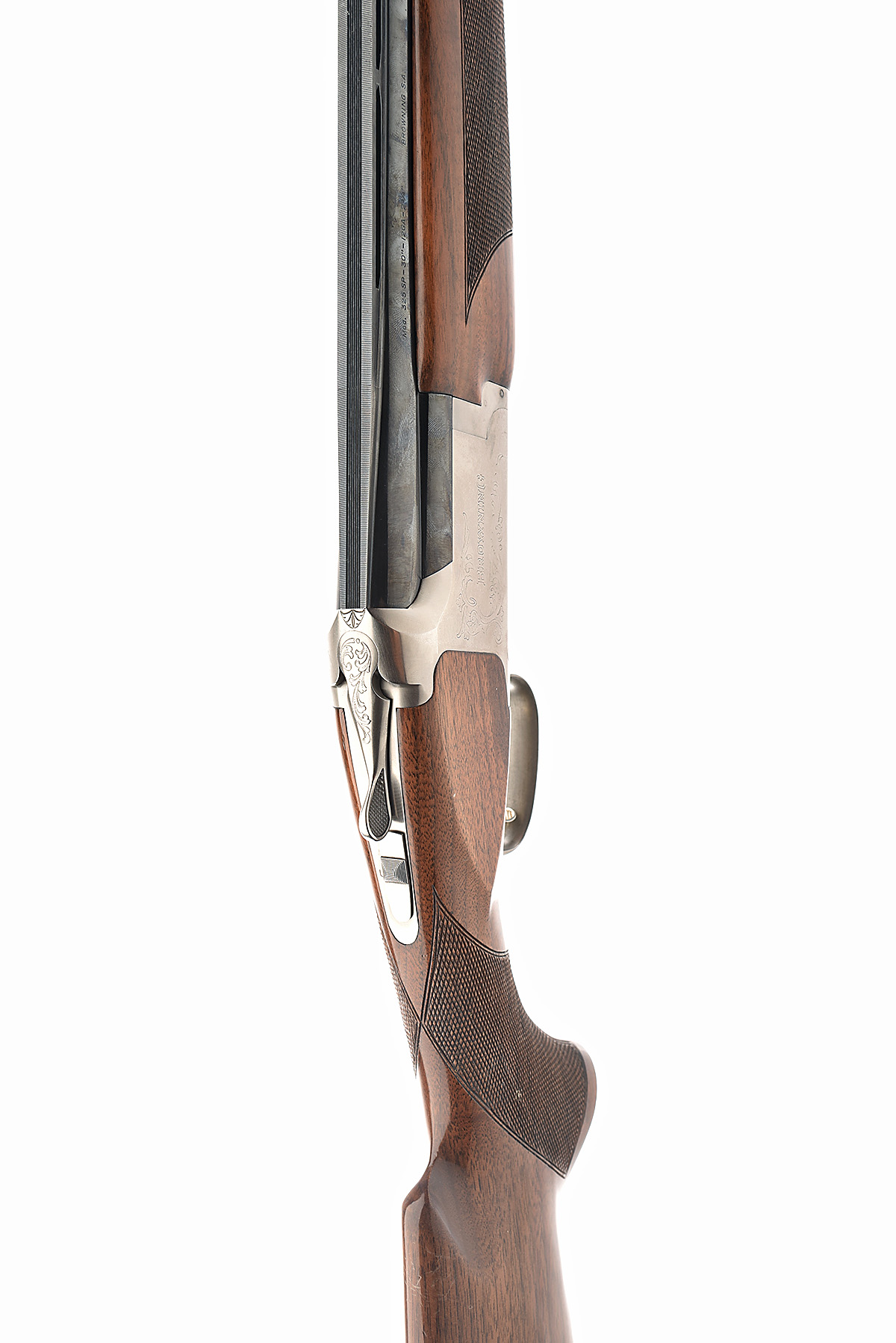 BROWNING 12-BORE '325' SINGLE-TRIGGER OVER AND UNDER EJECTOR, serial no. 62603NM, dated 1990, 30in. nitro barrels with 13mm ventilated matt top-rib, 2 3/4in. chambers, bored approx. 1/2 and full choke, hold-open toplever, manual safety with integral barrel selector switch, gold-washed adjustable single trigger, partial acanthus scroll engraving, bright finish, 14 3/4in. pistolgrip stock including buttplate, weight 7lb. 8oz.