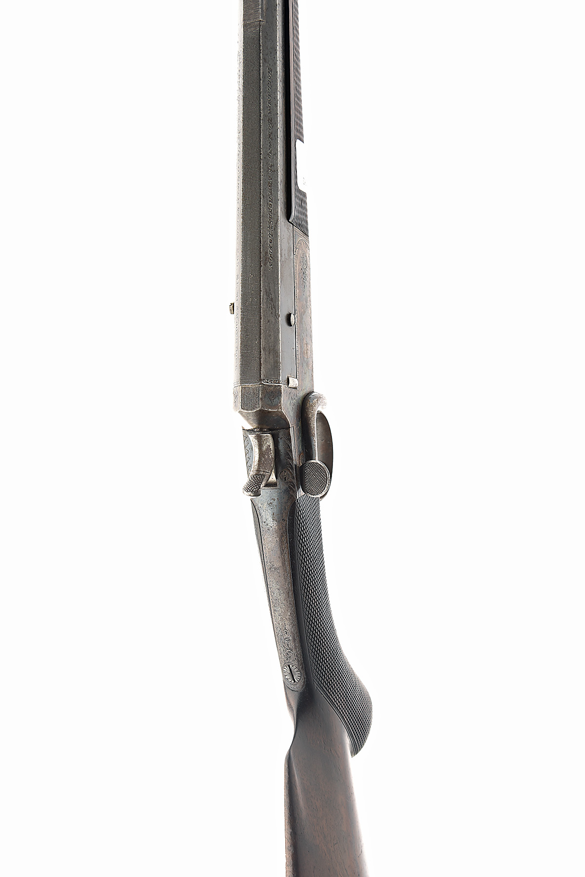 HOLLAND & HOLLAND .410 (SMOOTHBORED) CONVERTED SINGLE-BARRELLED SIDELEVER HAMMER ROOK & RABBIT RIFLE, serial no. 18432, circa 1905, converted from .295 semi-smoothbore, 26in. turned octagonal to round smoothbored nitro barrel, bead fore-sight, rear sight removed with dove-tailed insert, matted sighting flat, the adjacent flats engraved 'HOLLAND & HOLLAND. 98 NEW BOND ST. LONDON. WINNERS OF ALL THE FIELD RIFLE TRIALS. .295 SEMI SMOOTHBORE.', 2 1/2in. chambers, bored approx. imp. cyl. choke, sidelever opening, central rebounding hammer, border and partial acanthus scroll engraving, retaining some original colour-hardening and finish, 14 1/2in. figured pistolgrip stock, steel pistolgrip cap, Hackett-type snap-on splinter fore-end with horn finial, weight 4lb. 2oz.