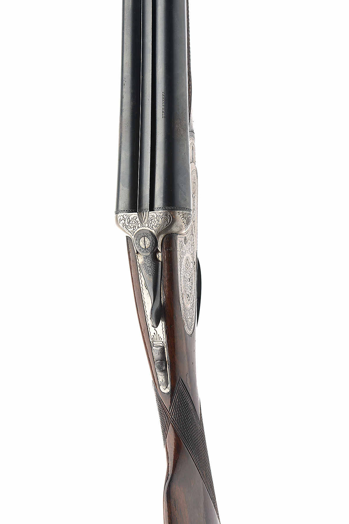 PARKER HALE 12-BORE SIDELOCK EJECTOR, serial no. 157618, for 1982 and made by Ignacio Ugartechea, 27 5/8in. (70cm) nitro chopperlump barrels, 2 3/4in. chambers, bored approx. 1/4 and 3/4 choke, treble-grip action with hidden third bite, removable striker discs, automatic safety, floral and scroll engraving, bright and blued finish, 14 1/2in. stock (chip at toe), weight 7lb., in a canvas and leather case