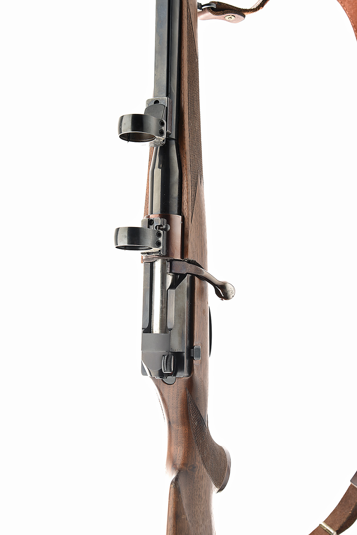 MAUSER .243 WIN. 'MODEL 66' BOLT-MAGAZINE SPORTING RIFLE, serial no. SG52375, 23 1/2in. nitro barrel, threaded for sound moderator, scope rings with Apel quick detachable mounts, manual safety, figured pistolgrip stock with ventilated recoil pad and cheekpiece, leather sling
