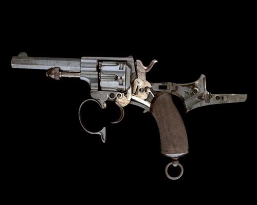Belgian circa 1890, by the firm of Simonis, Janssen and Dumoulin, with octagonal 4 1/2in. barrel, blued fluted cylinder, solid frame with hinged sideplate secured by the trigger-guard, loading gate with hammer interuptor on the right hand side, chequered walnut grips and iron pommel-cap with lanyard ring, much original finish remaining, black powder proof
