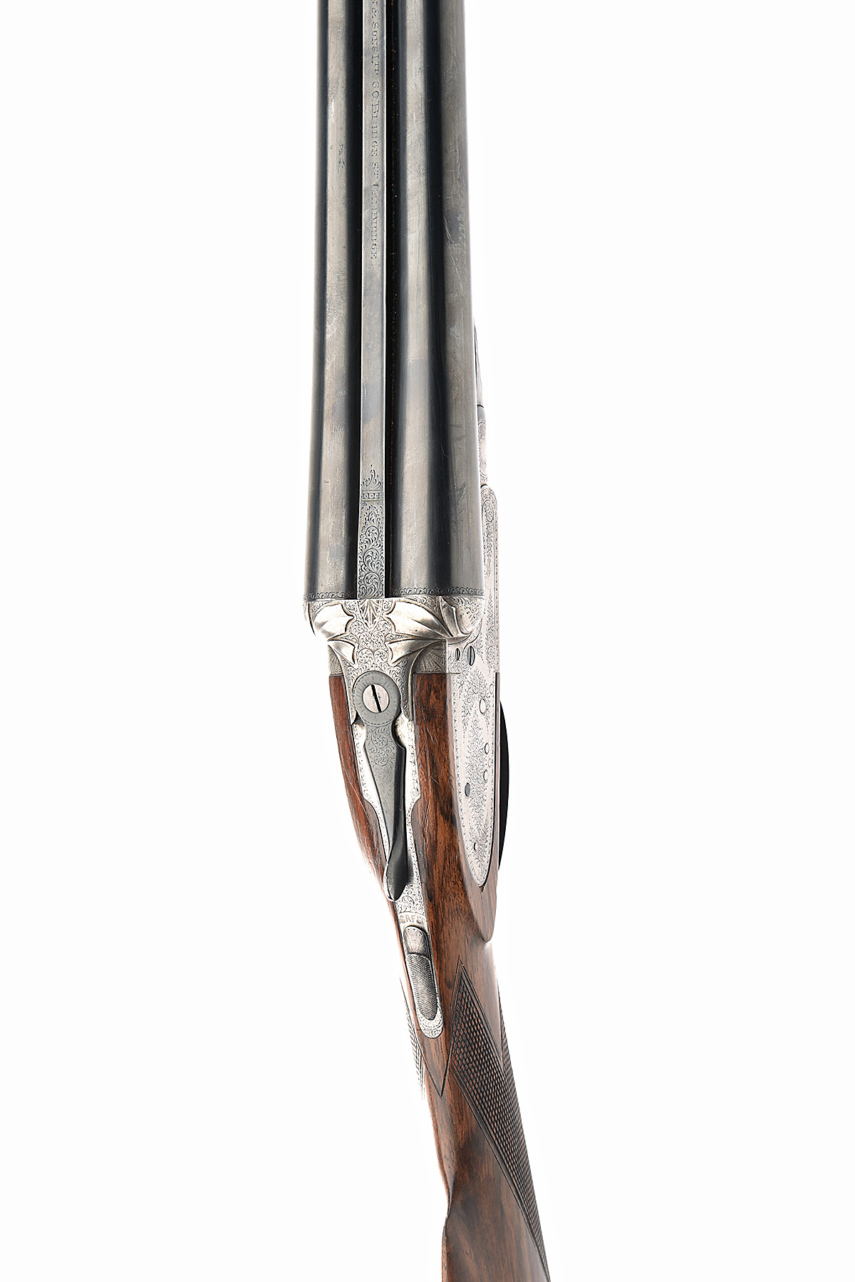 GALLYON & SONS 12-BORE SIDELOCK EJECTOR, serial no. 9029, circa 1906, 28in. replacement nitro barrels (in 1969), the rib engraved 'BARRELS BY GALLYON & SONS LTD. 66 BRIDGE ST. CAMBRIDGE.', 2 1/2in. chambers, bored approx. imp. cyl. and 3/4 choke, carved stylised acanthus leaf fences, automatic safety, border and acanthus scroll engraving, brushed finish, 15 1/4in. replacement stock, weight 6lb. 13oz.