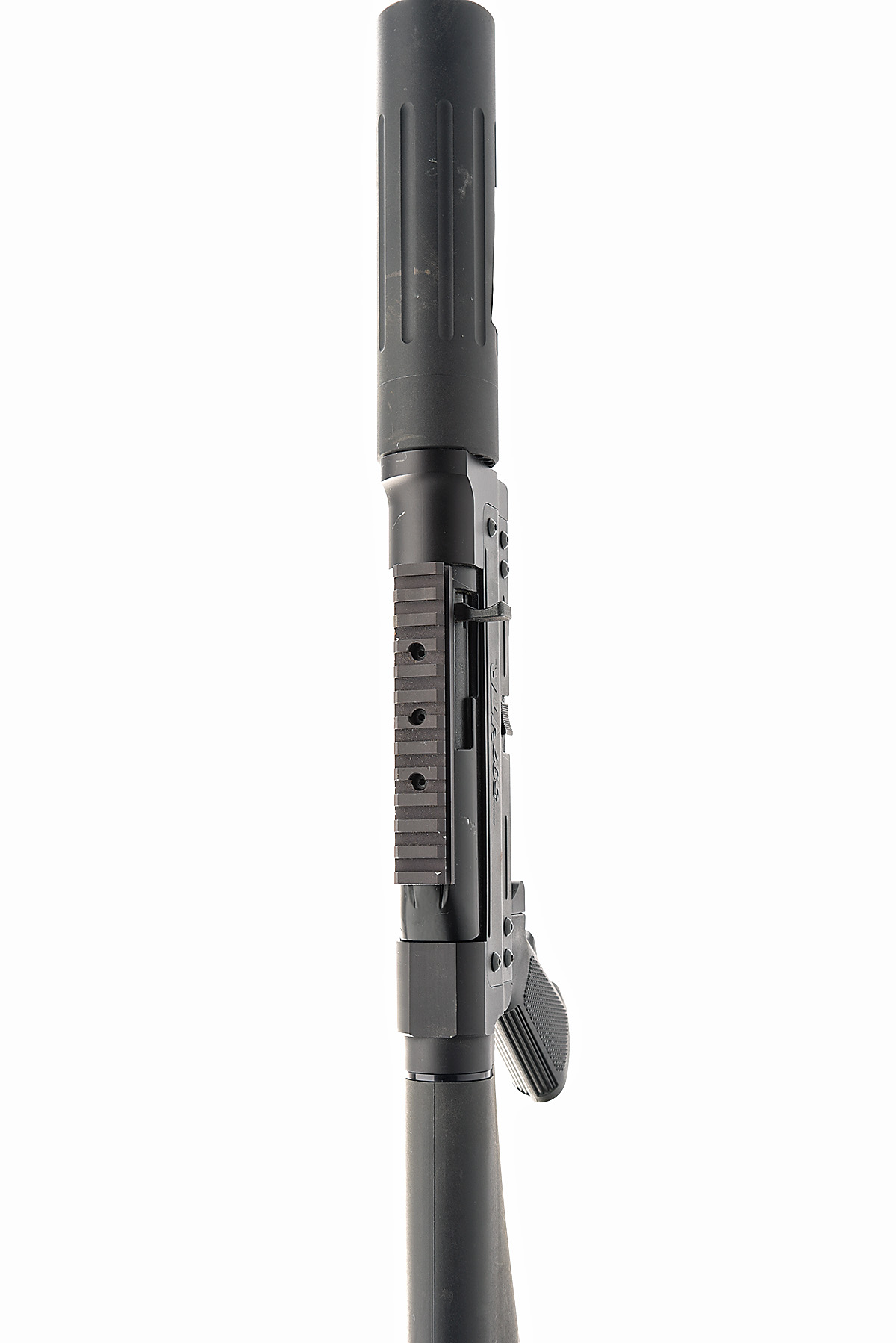 16 1/2in. unsighted nitro barrel, threaded for sound moderator, scope rings, manual safety, detachable magazine, synthetic stock, sling eyes