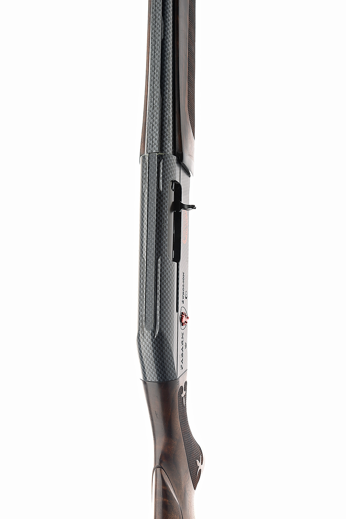 FABARM 12-BORE (3IN.) 'EUROLION COMPETITION MKII EXTRA' SEMI-AUTO SHOTGUN, serial no. 5001880, for 2000, restricted magazine, 29 7/8in. Tribore nitro barrel with 10mm ventilated matt rib, serial no. 4019305, 3in. chamber, multichoke (with spares), manual push-button safety, magazine cut-off switch, action and barrel with carbon fibre effect finish, 14 1/2in. pistolgrip stock including ventilated rubber recoil pad, with adjustable comb, weight 8lb. 1oz.,
