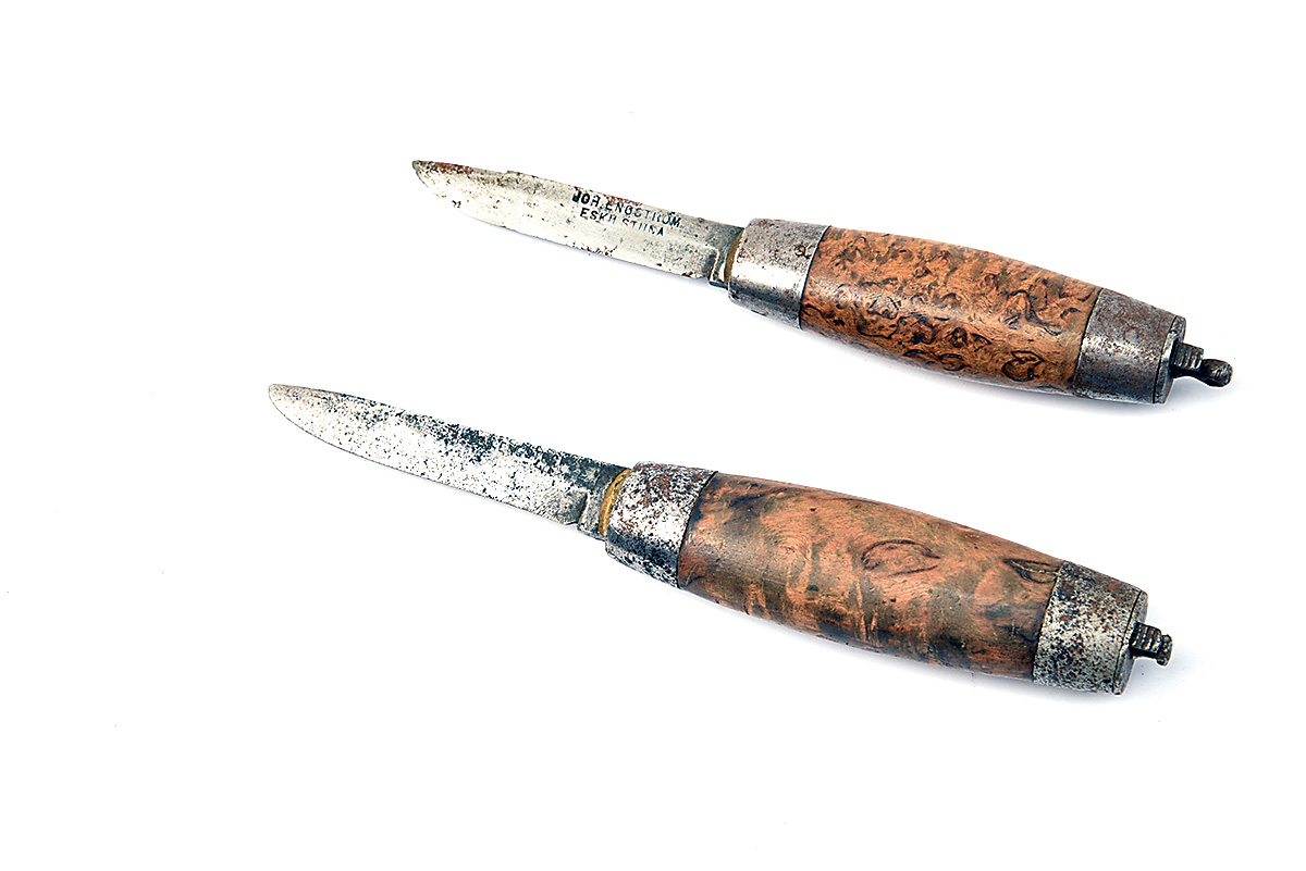 A GOOD PAIR OF VINTAGE SWEDISH BARREL-KNIVES BY ENGSTROM,