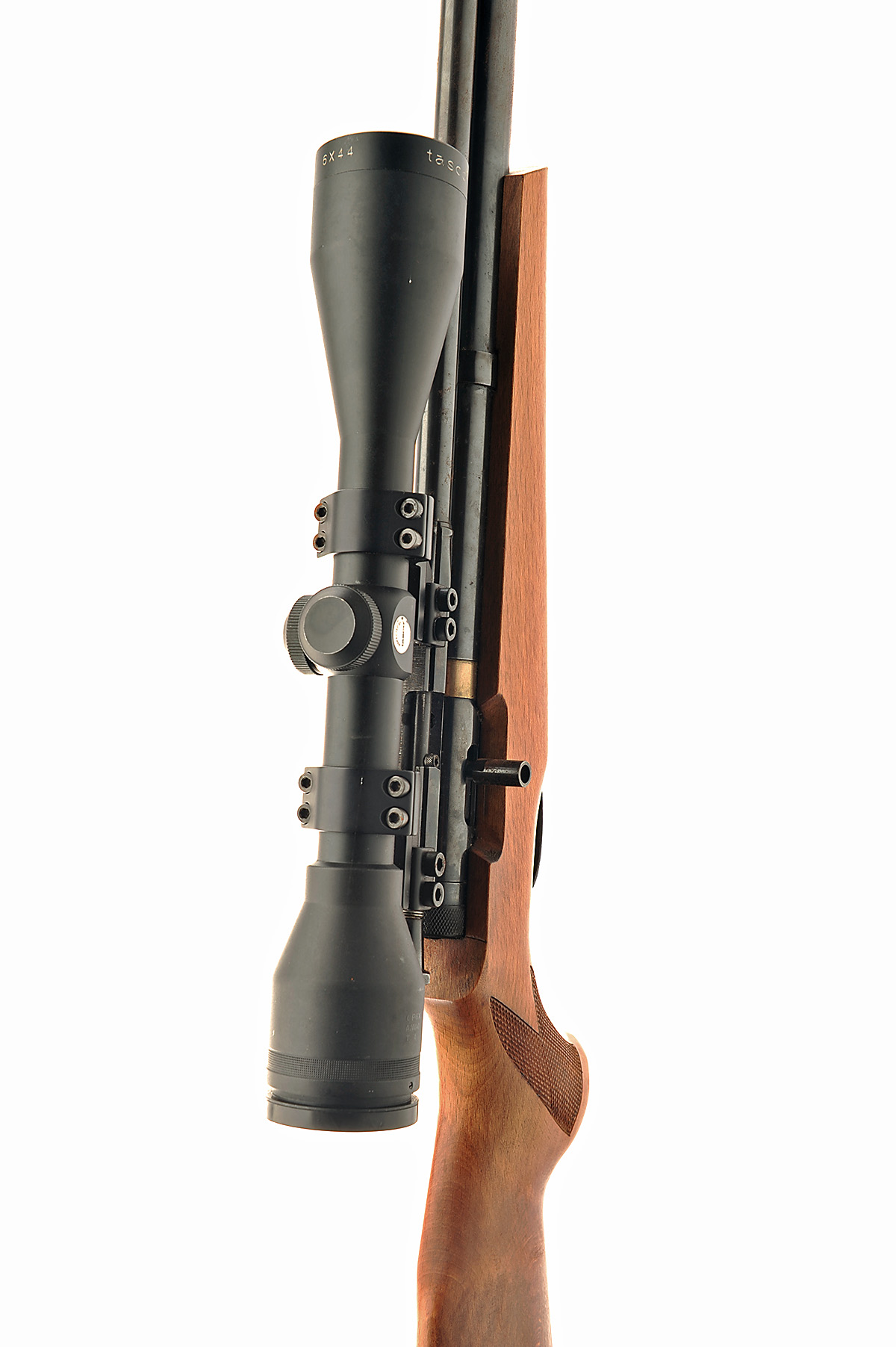 A .25 FAC RATED PRE CHARGED PNEUMATIC AIR RIFLE SIGNED BOWKETT Serial no 5RTM1,