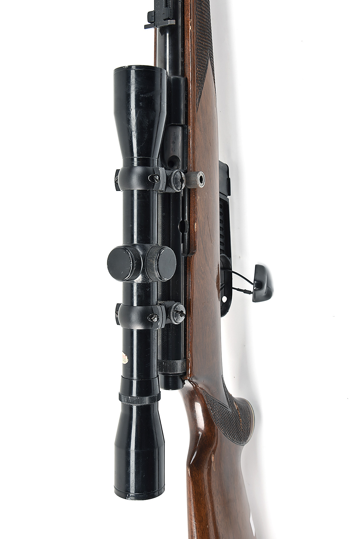 VOERE .22 L.R. SELF-LOADING SPORTING RIFLE, serial no. 168372, 21 1/4in. nitro barrel, threaded for sound moderator, fore-sight missing, tangent rear-sight, fitted with a Nikko Stirling 4x40 telescopic sight, manual safety, detachable magazine, pistolgrip stock, leather sling