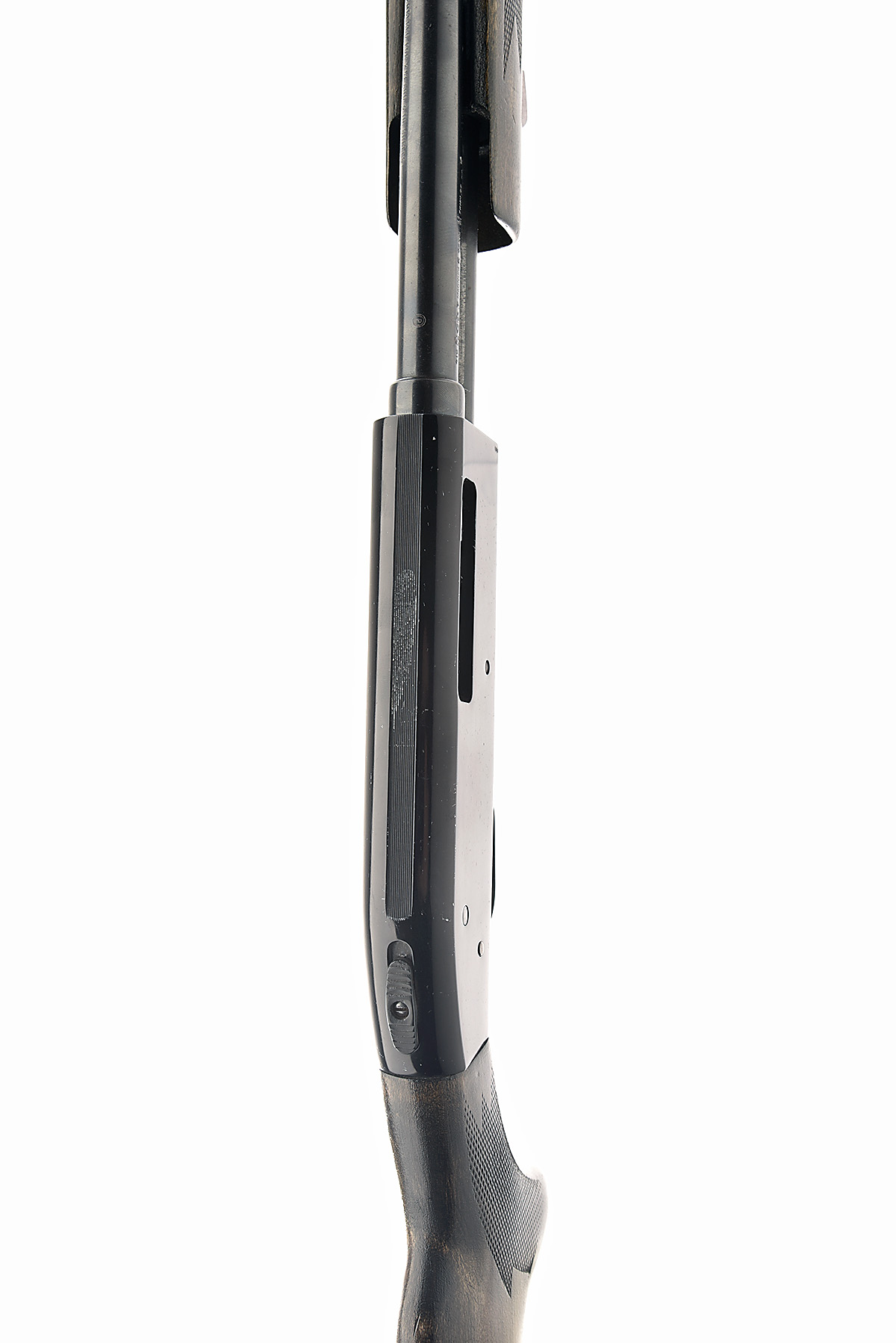 MOSSBERG .410 (3IN.) '600ET' MODERATED PUMP-ACTION SHOTGUN, serial no. H671182, for 1981, restricted magazine, 26in. nitro reproved (in 2010) barrel including sound moderator, 3in. chamber, manual tang safety, plain blacked action, 14in. pistolgrip stock including buttplate