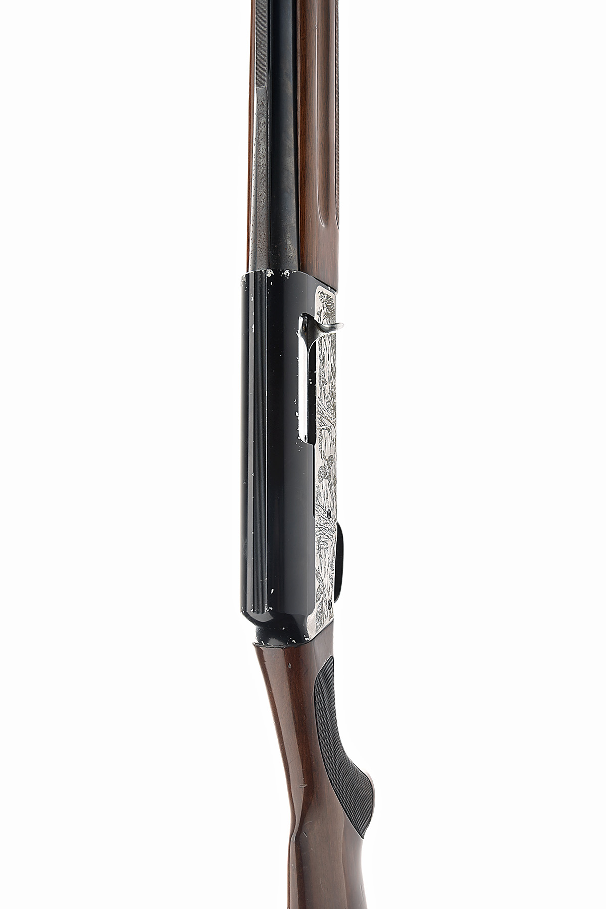AN F.A.C. RATED FRANCHI 12-BORE 'HUNTER 48AL' SEMI-AUTO serial no. D80349, for 1976, 27 7/8in. nitro barrel, numbered FNA2790, 2 3/4in. chamber, bored approx. 1/2 choke, game scenes, much loss to blacked finish, in a wood box