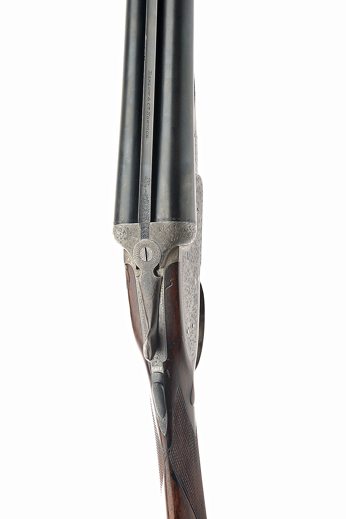 CHARLES HELLIS 16-BORE SIDELOCK EJECTOR, serial no. 3333, circa 1926, 28in. replacement nitro barrels (slightly loose on action), the rib engraved 'DARLOW & CO. NORWICH', 2 1/2in. chambers, bored approx. 1/2 and full choke, treble-grip action, automatic safety with silver-inlaid 'SAFE' detail, bold acanthus scroll engraving with beaded bordering, 14 1/2in. figured stock including 3/4in. wooden extension, weight 6lb. 2oz.