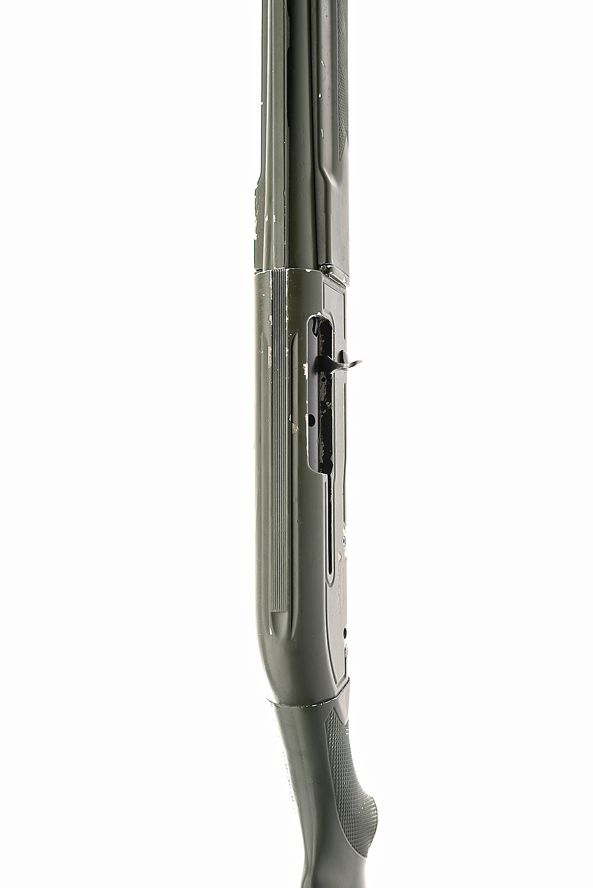 HATSAN 12-BORE (89MM) 'ESCORT MAGNUM' SEMI-AUTO SHOTGUN, serial no. 075190, circa 2007, restricted magazine, 30in. steel-shot proved nitro barrel with 7mm ventilated matt rib, 89mm chamber, multichoke (no spares), manual push-button safety, magazine cut-off switch, 14in. synthetic pistolgrip stock including rubber recoil pad, the whole in DIY applied green finish