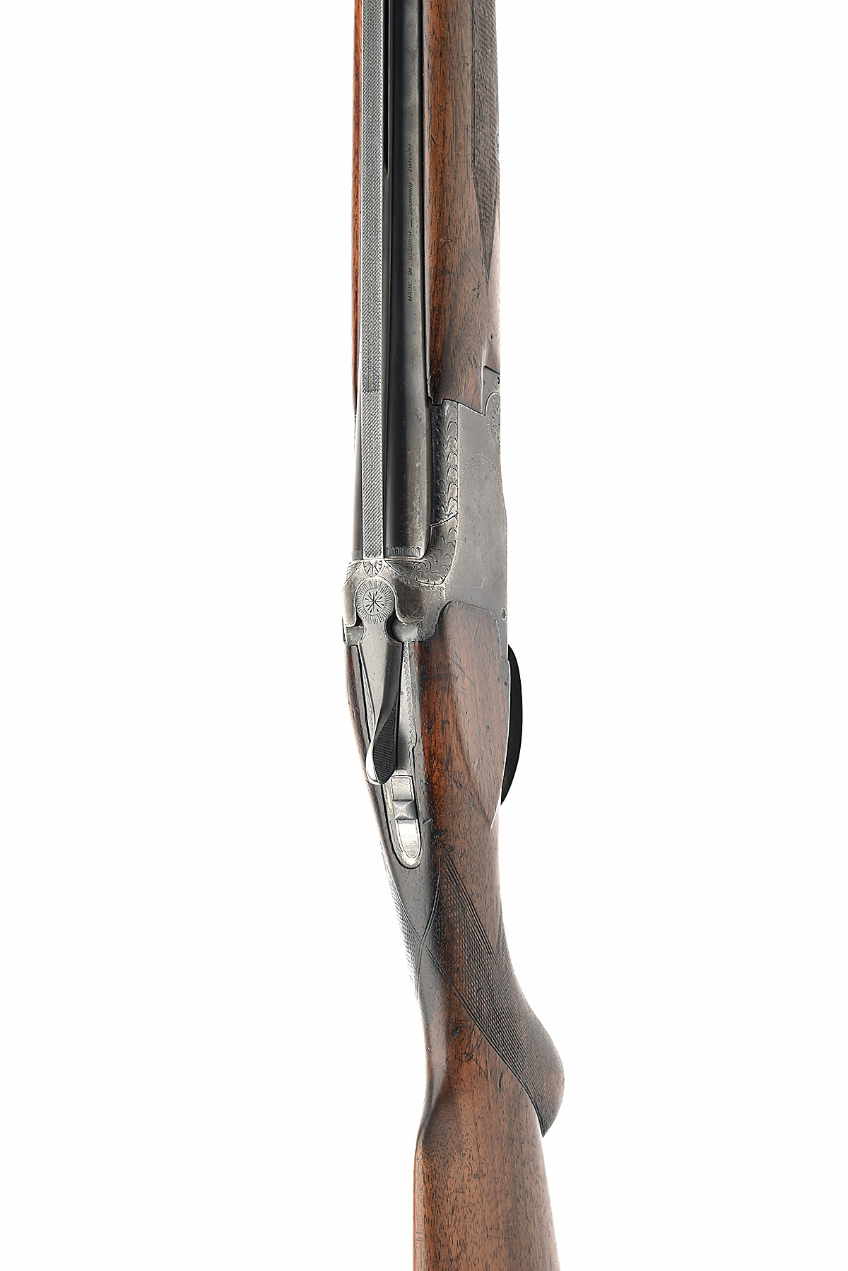 FABRIQUE NATIONALE 12-BORE SINGLE-TRIGGER OVER AND UNDER EJECTOR, serial no. 9491 S3, dated 1963, 30in. nitro barrels (loose) with 8mm ventilated matt top-rib, 2 3/4in. chambers, bored approx. full choke in both, hold-open toplever, manual safety with integral barrel selector switch, border engraving, 13 3/4in. semi-pistolgrip stock including buttplate, weight 7lb. 10oz.