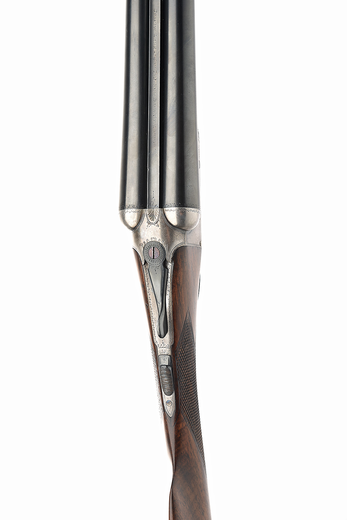 JOSEPH LANG & SON 12-BORE BOXLOCK EJECTOR, serial no. 16421, circa 1923, 28in. nitro reproved barrels (right wall at 17), rib engraved 'JOSEPH LANG & SON. 102 NEW BOND ST. LONDON. W.', 2 1/2in. chambers, bored approx. 1/4 choke in both, automatic safety, border engraving, retaining traces of original colour-hardening and finish, 14 1/2in. stock, fore-end wood split and repaired