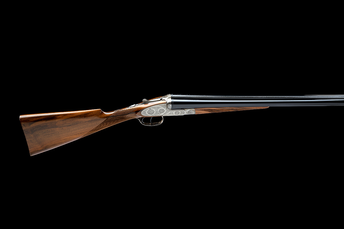 for 1964, 27 1/2in. nitro barrels with raised file cut rib, 2 3/4in. chambers, bored approx. 1/2 and full choke, treble-grip action with hidden third bite, removable striker discs, automatic safety, hand-detachable lockplates with cranked release lever, cocking-indicators, articulated front trigger, fine acanthus scroll engraving with floral bouquets, the triggerplate signed 'INC. ORIZIO. C.', bright finish, 14 1/8in. stock, weight 6lb. 7oz., with its original certificate