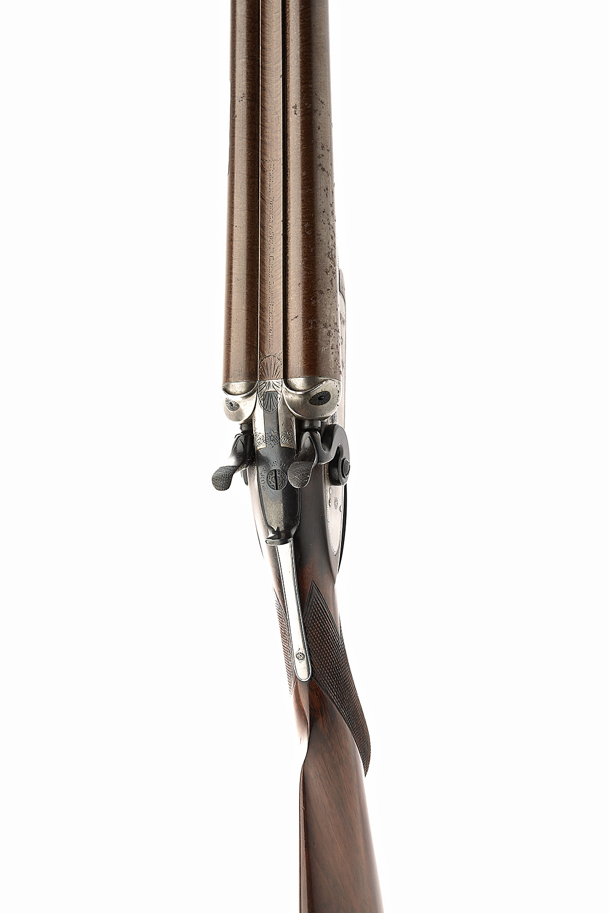 THE STOCK, ACTION AND FORE-END ONLY OF A WILLIAM POWELL 12-BORE '1864 PATENT' BAR-IN-WOOD LIFT-UP TOPLEVER HAMMERGUN, serial no. 6704 , for 187, originally with black powder only barrels