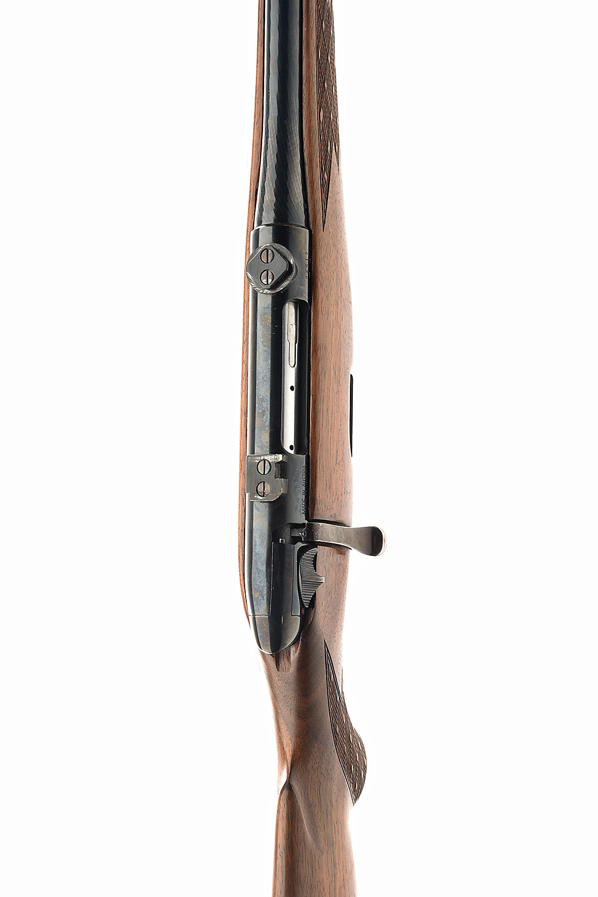 STEYR-DAIMLER-PUCH MANNLICHER .243 'MOD L' BOLT-MAGAZINE STUTZEN SPORTING RIFLE, serial no. 84517, 20in. nitro barrel, ramp-mounted blade fore-sight,V rear-sight, turn-down bolt, manual safety, detachable magazine, set triggers, well-figured full-length pistolgrip stock with ventilated recoil pad and cheekpiece, sling swivels