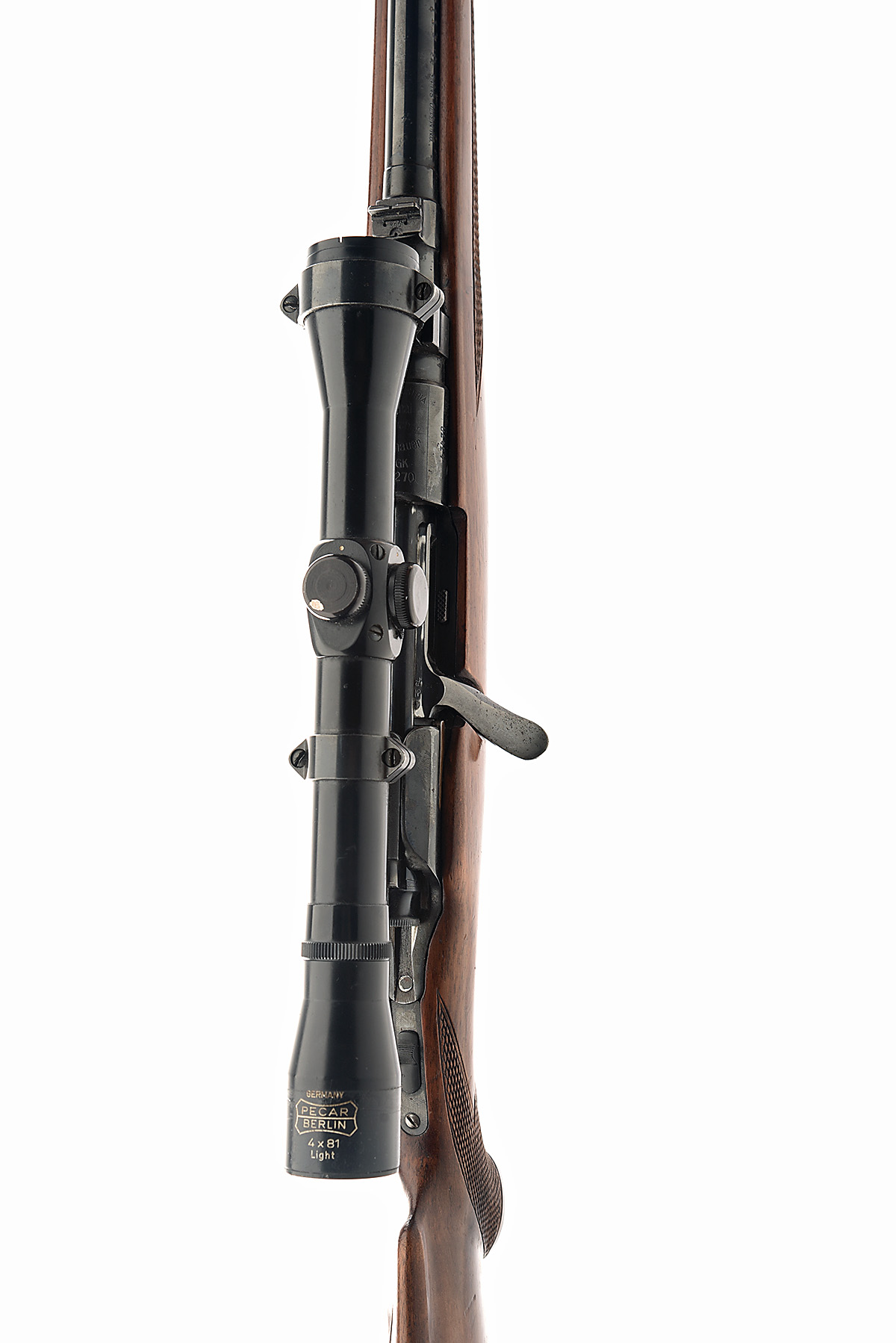 STEYR-DAIMLER-PUCH .270 WIN 'MODEL GK' BOLT-MAGAZINE SPORTING RIFLE, serial no. 43470, circa 1964, 24in. nitro barrel, ramp-mounted bead fore-sight, leaf rear-sight with 1 x folding leaf rear-sight, receiver ring marked ' MADE IN AUSTRIA ORIGINAL MANNLICHER SCHOENAUER MOD GK .270', fitted with a Pecar 4x81 light telescopic sight, manual tang and flag safety, detachable floor plate, figured pistolgrip stock with cheekpiece