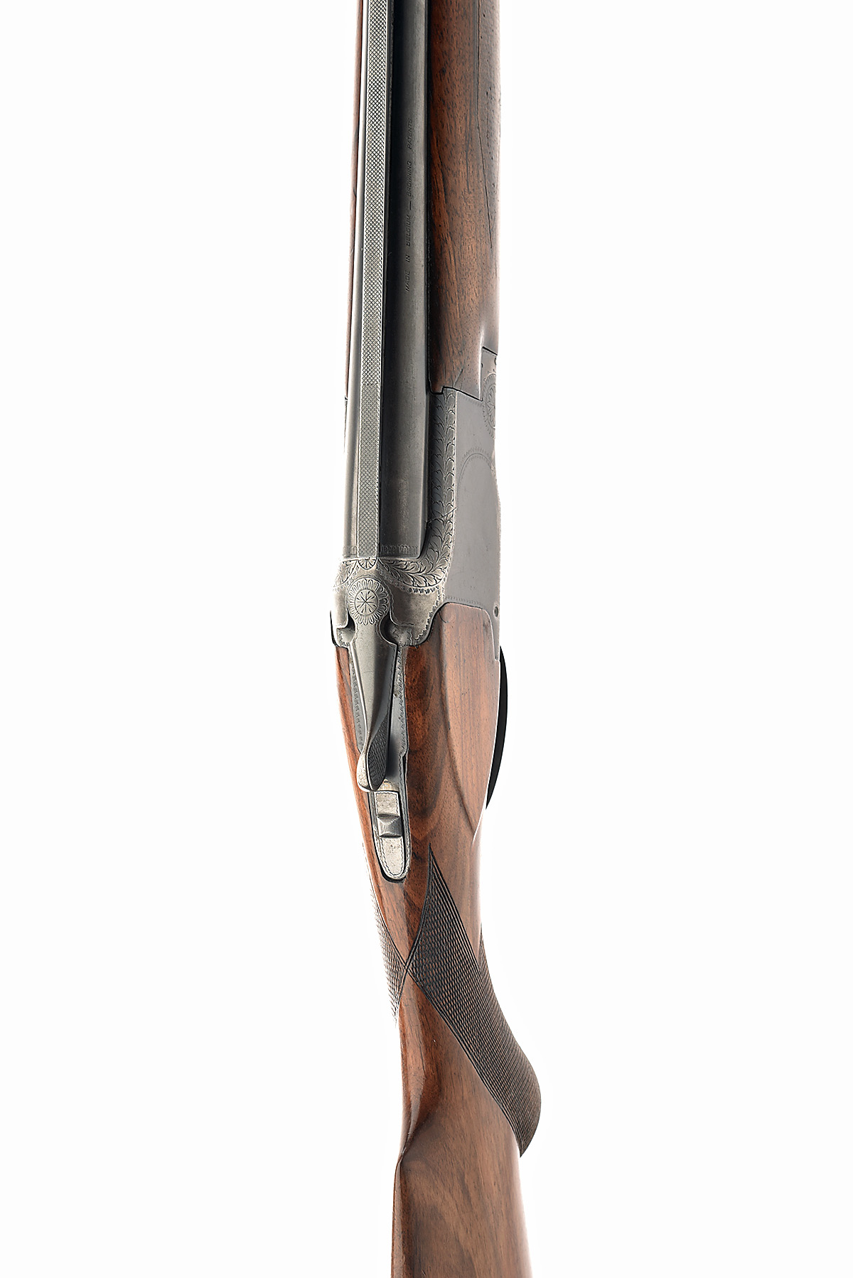 FABRIQUE NATIONALE 12-BORE DOUBLE-TRIGGER OVER AND UNDER EJECTOR, serial no. 62033, for 1957, 28in. nitro barrels with 6mm ventilated matt top-rib, 2 3/4in. chambers, bored approx. 1/2 and full choke, hold-open toplever, manual safety, border engraving, 14 1/4in. pistolgrip stock including 1 1/2in. extension and rubber recoil pad, weight 7lb. 2oz.