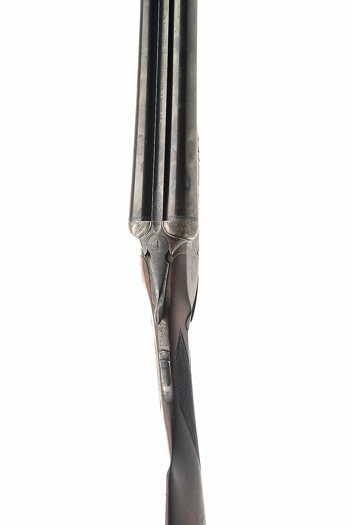 R. ROBINSON 12-BORE BOXLOCK EJECTOR, serial no. 11018, for 1930, 28in. nitro barrels, the rib engraved 'R. ROBINSON. (GUNMAKERS). LTD. 7 QUEEN ST. HULL.' 2 1/2in. chambers, bored approx. true cyl. and full choke, treble-grip action with hidden third bite, automatic safety with gold-inlaid 'SAFE' detail, fine acanthus scroll engraving with beaded bordering and with scrolling banners engraved 'R. ROBINSON', retaining some original colour-hardening and finish, 14 1/2in. figured stock, weight 6lb. 7oz.