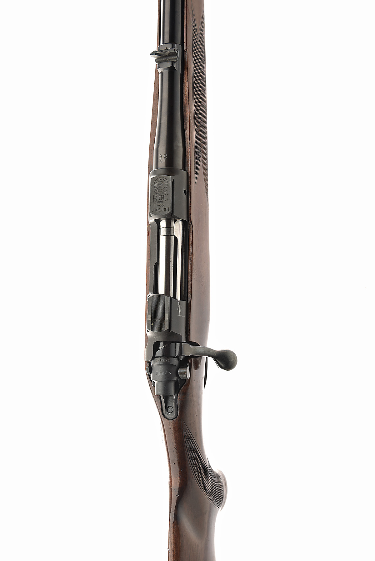 BRNO .243 WIN. 'ZKK-601' BOLT-MAGAZINE SPORTING RIFLE, serial no. 58162, circa 1993, 24in. nitro barrel, ramp-mounted bead fore-sight, leaf rear-sight, manual safety, hinged floorplate, pistolgrip stock with recoil pad and cheekpiece, sling eyes