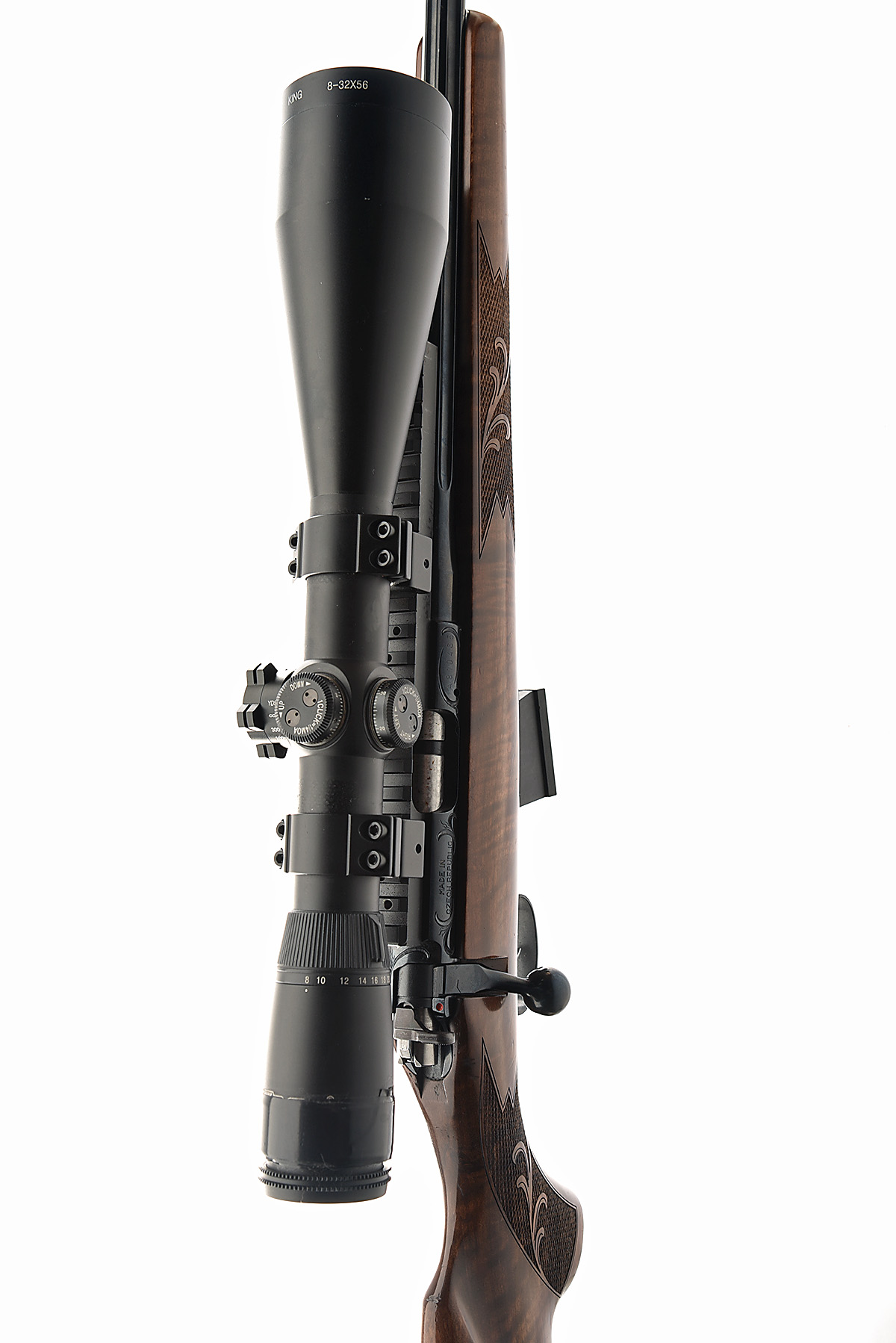 CZ .17 HMR '453 PREMIUM' BOLT-MAGAZINE SPORTING RIFLE, serial no. A310465, circa 2010, 22 1/2in. unsighted fluted nitro barrel, threaded for sound moderator, fitted with a Quarry King 8-32x56 telescopic sight, manual safety, detachable extended magazine, figured pistolgrip stock with recoil pad, sling eyes